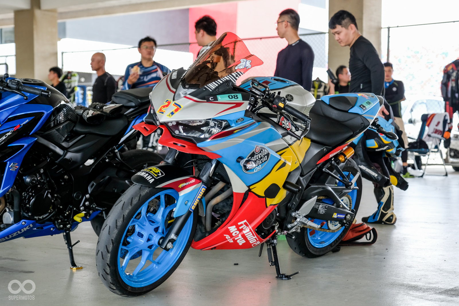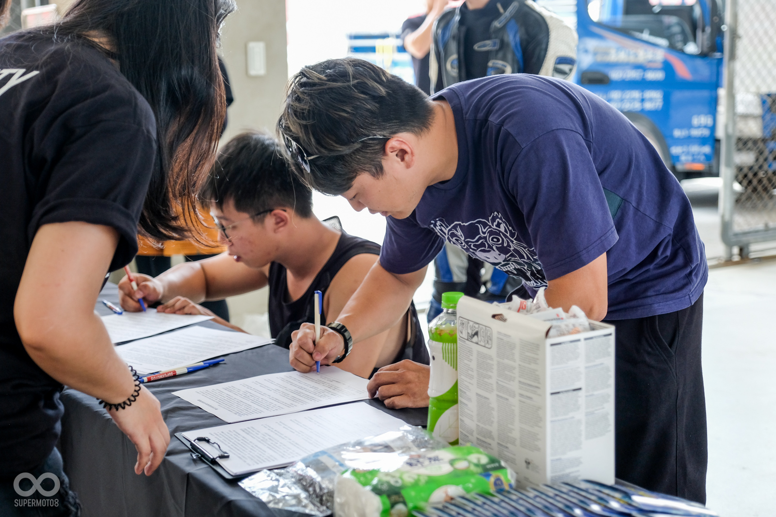 活動當天有不少車友一早就從自家騎車出發,先悠閒的享受一段公路旅行之後,於中午時分抵達台中麗寶卡丁車場報到,主辦單位也依據車輛的性能、車主賽道經驗分為四組,在櫃檯完成報到手續領取號碼貼紙之後,車友們也開始針對自己的愛車,進行最後的檢查與調整。