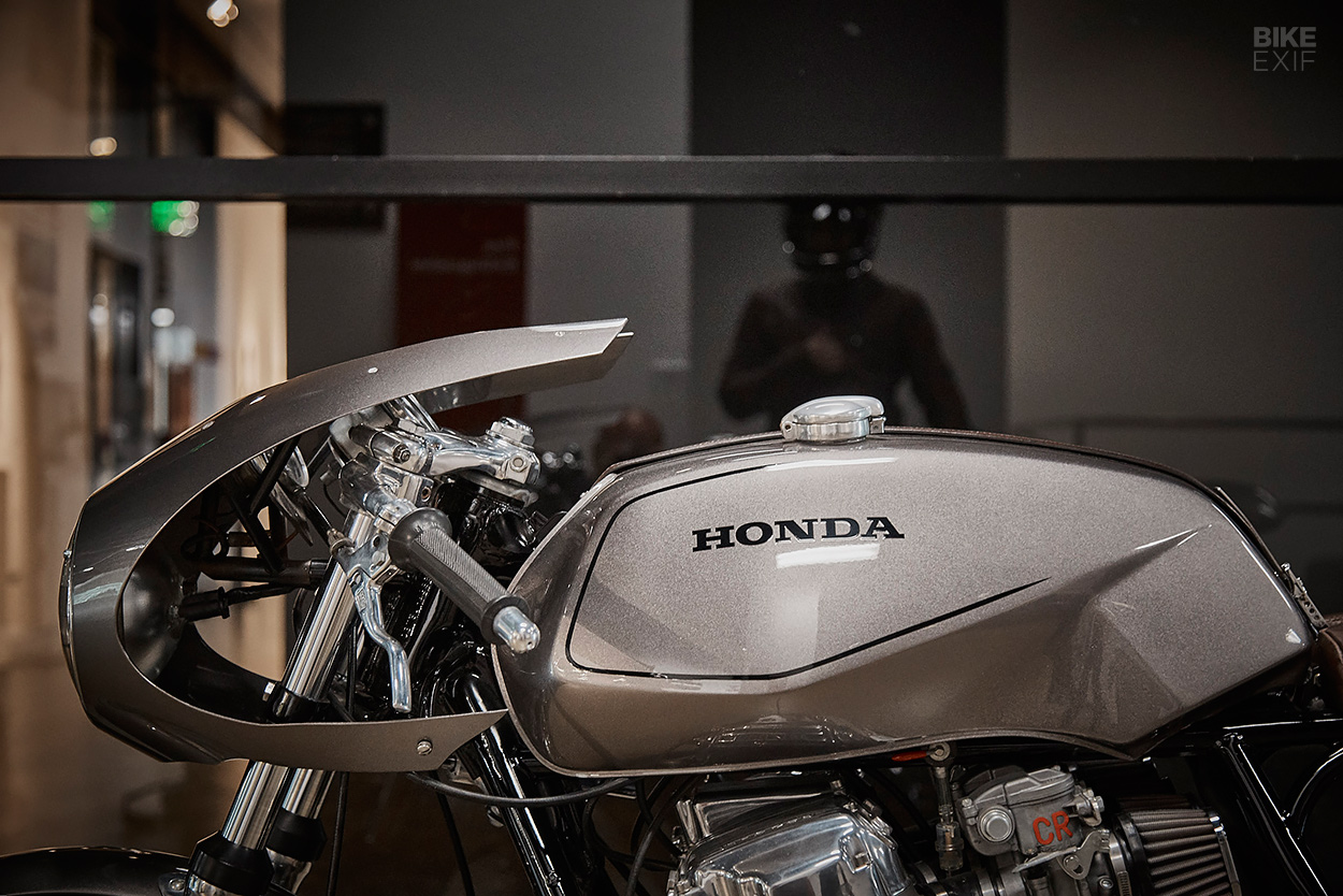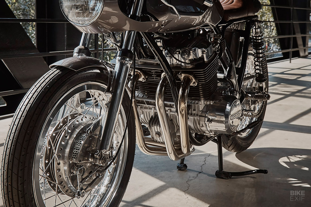 Buchanan的Spokes & Rims車輪,並且採用了AVON Roadrunner F2與R2具有歷史意義的賽車胎,車身採用復古的賽車圖騰作為圖裝,完全緊貼著HONDA的復古老賽車那種調調。另外,完成品的油箱其實是來自於SUZUKI,也就是1984年GS400S但經過大量修改,以及重建鋁合金整流罩等鎖點、椅墊、尾部零件等也都重新設定過。