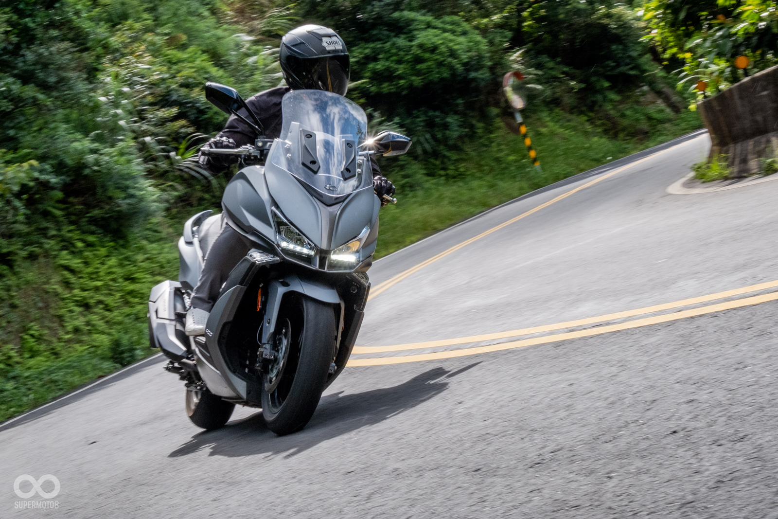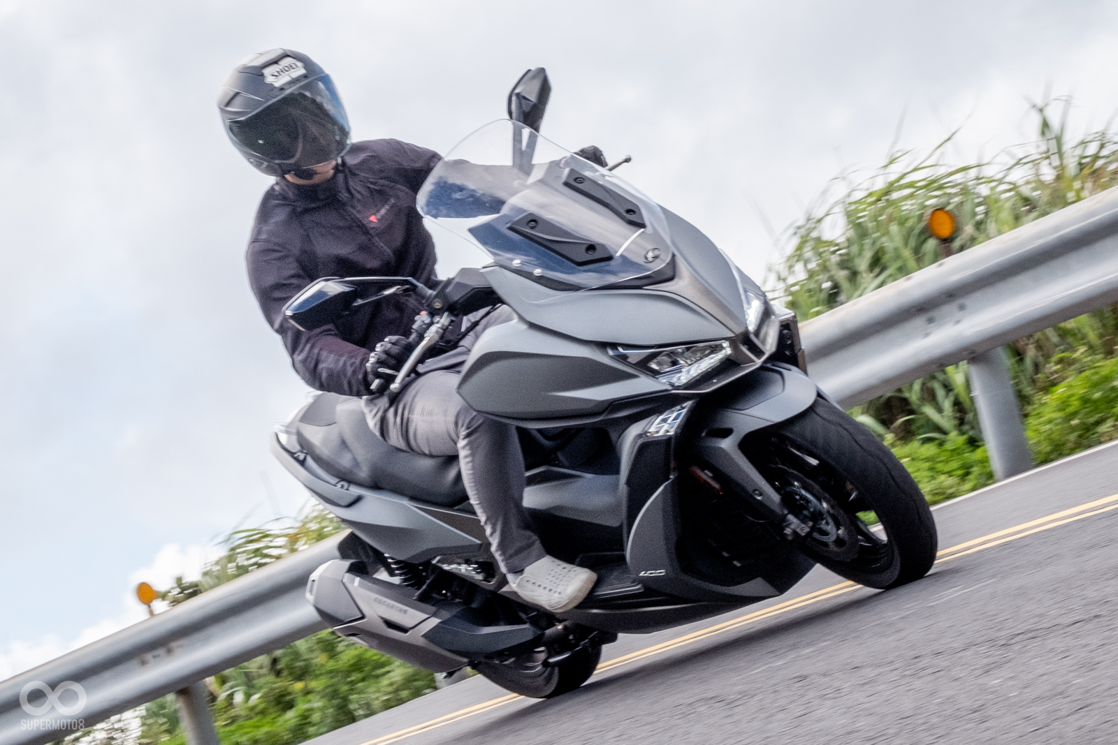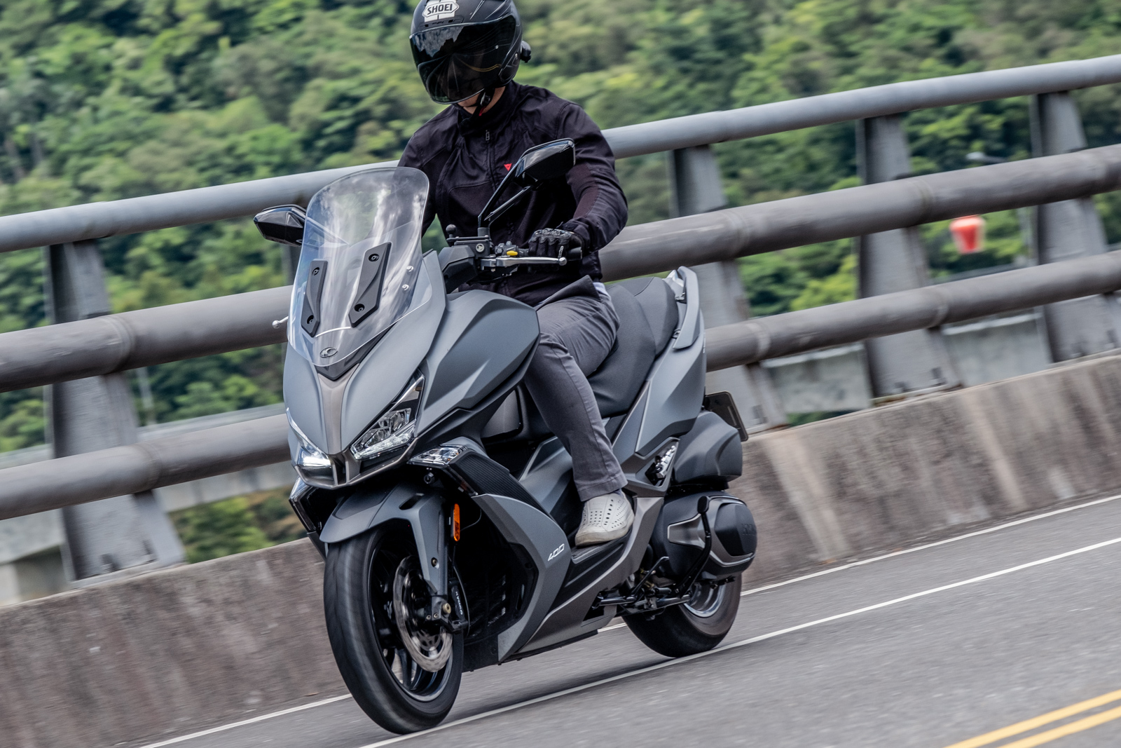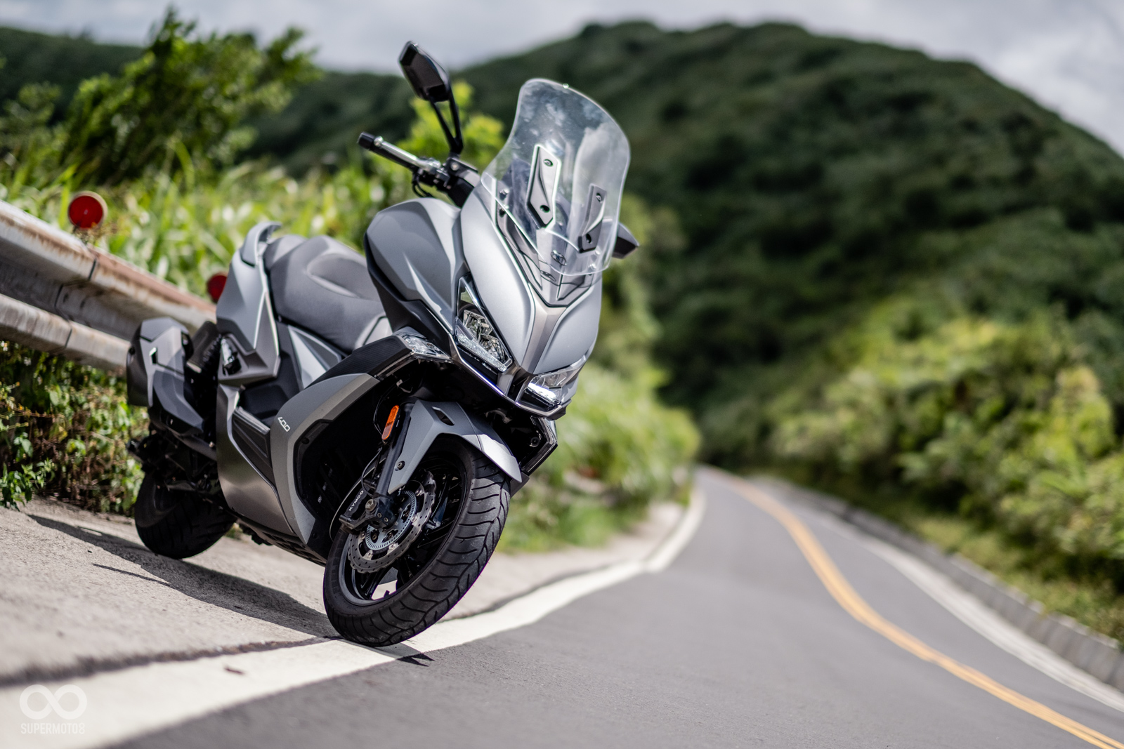 因為拍攝需求,我們也轉上前往九份的102縣道,這裡多的是緊湊的急彎以及不算寬的道路範圍,KYMCO XCITING S 400雖然無法與125級距速克達的靈活性相提並論,但當手指扣下煞車時,前雙輻射卡鉗發揮的制動力相當線性且足夠,較為運動的前後懸吊系統穩穩拖住車身,從煞車、傾倒、出彎,提供給騎士的樂趣可不僅是轉過一個彎角,而是會讓人不斷想持續探究車輛極限,並且享受沈浸在彎道中的穩定感。對比筆者一陣子前騎乘的HONDA NSS 300這輛較為通勤取向的車款,在懸吊的軟硬度以及彎中的回饋感,XCITING S 400顯得熱血不少。