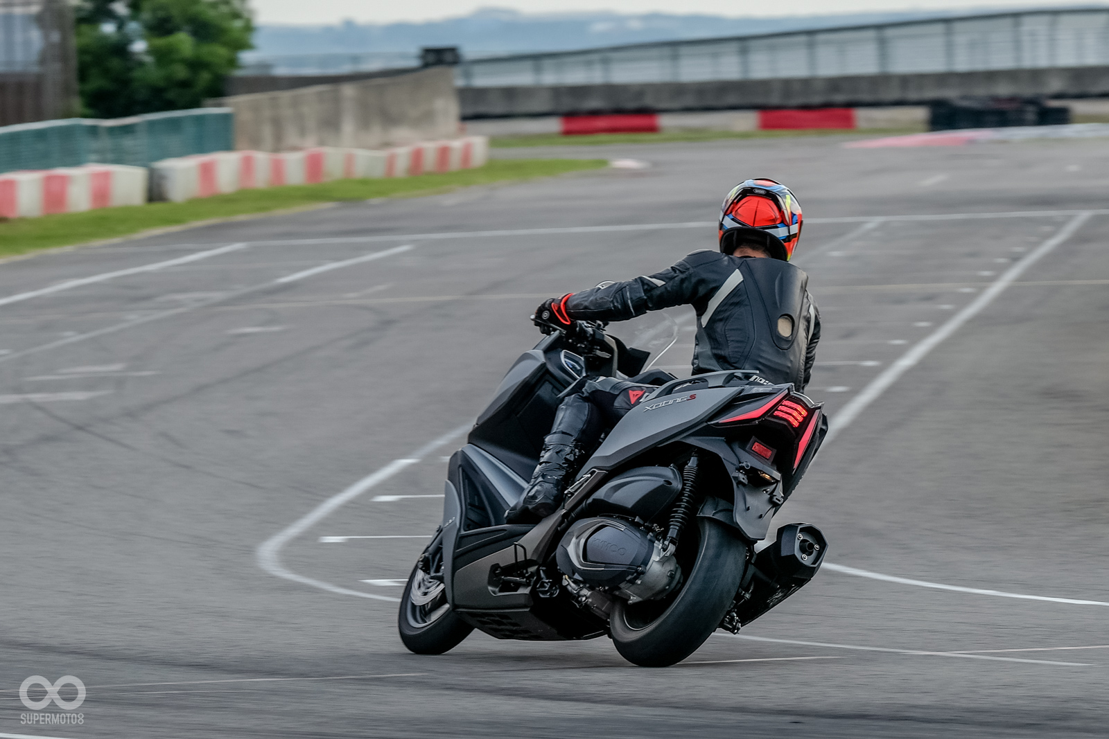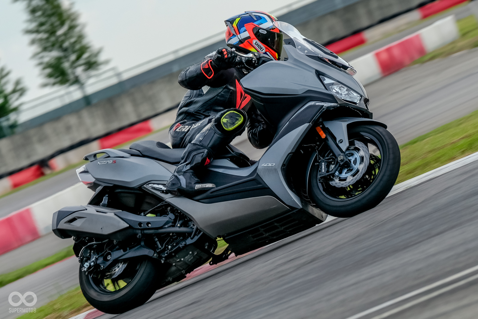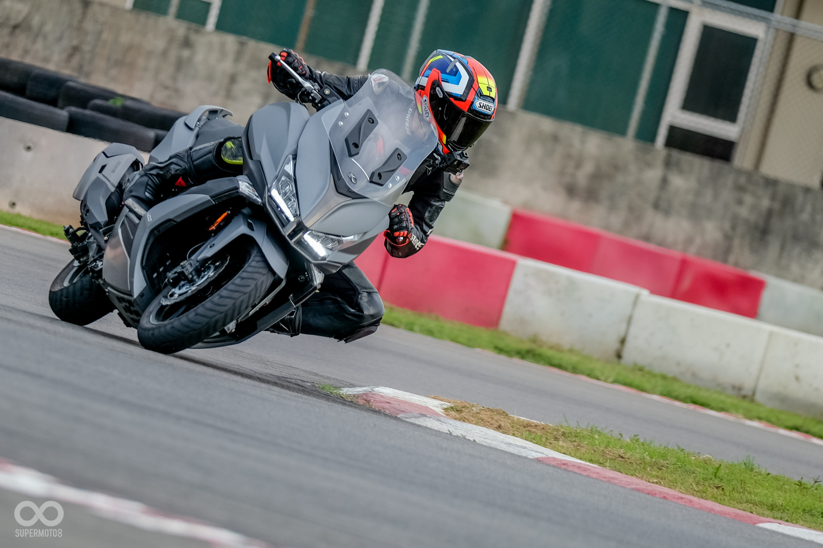 XCITING S 400在麗寶卡丁賽道中,絕對不會成為賽道上的移動路障,但卻也收起了幾分緊迫、高壓的騎乘節奏,取而代之的是從容地奔馳在高抓地力的賽道路面上頭,比起其他參與者劍拔弩張的氣勢,我倒是可以完全投入的享受賽道與車輛帶來的回饋感。