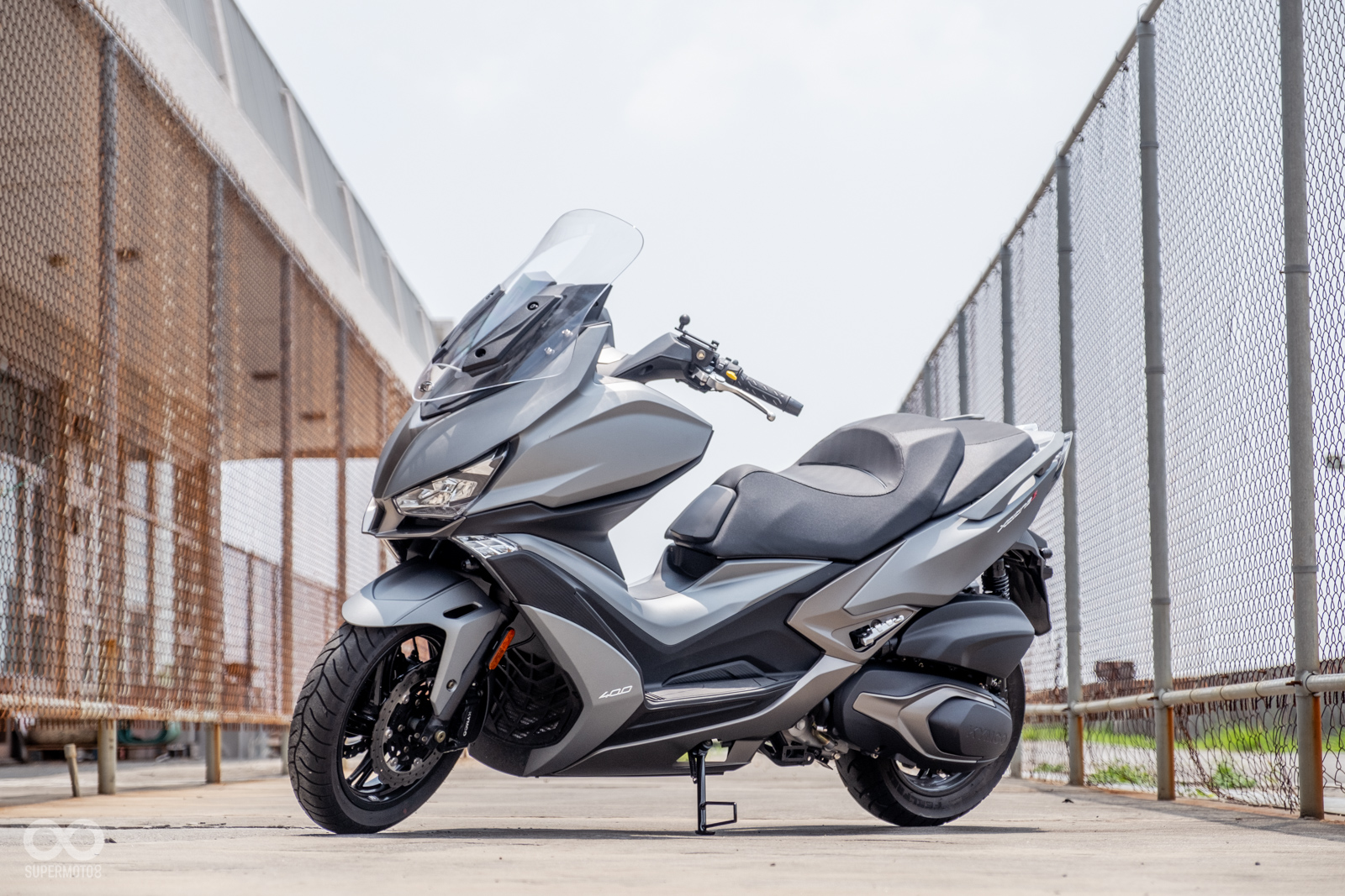動力表現一直都是刺激車系在該級距的優勢之一,KYMCO XCITING S 400採用SOHC單缸水冷引擎,排氣量為399.6c.c.,馬力來到36ps配上38.4Nm的最大扭力,其實在台灣的用路環境已經是游刃有餘,如果對比同為400級距但配有DOHC引擎的SUZUKI BURGMAN 400馬力為31.2ps,價格帶接近但是排氣量較小的YAMAHA XMAX則是28ps。