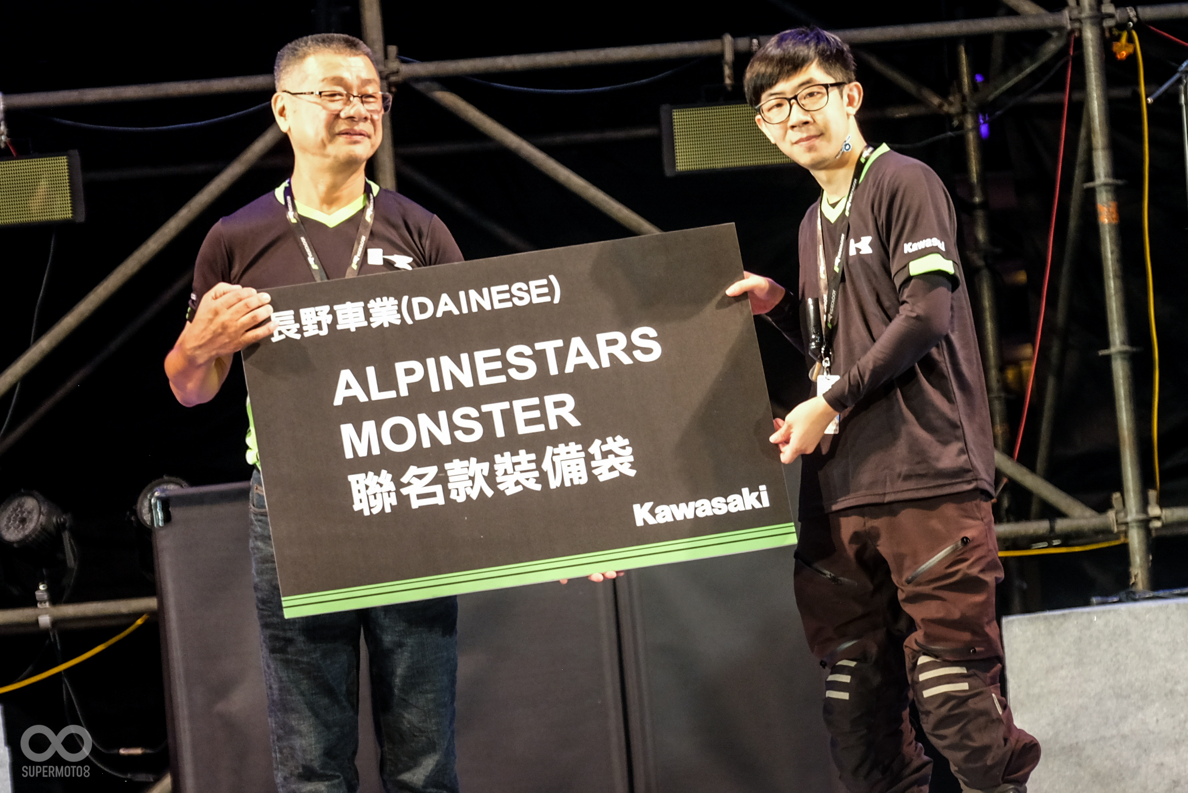 來自各方支持Kawasaki的合作品牌也在力邀下登場,包括輪胎品牌PIRELLI(好運車業)、MICHELIN(忠林實業有限公司)、METZELER(梅馳勒有限公司);日本安全帽品牌SHOEI(高馳實業股份有限公司)、國內知名品牌ZEUS(隆輝安全帽)與法國品牌ASTONE(亮宇貿易有限公司);部品品牌AlPINESTARS(長野車業)、MACNA TAIWAN、SPIDI(迪宇有限公司)、SPEED-R SPORTS(速比爾有限公司)。