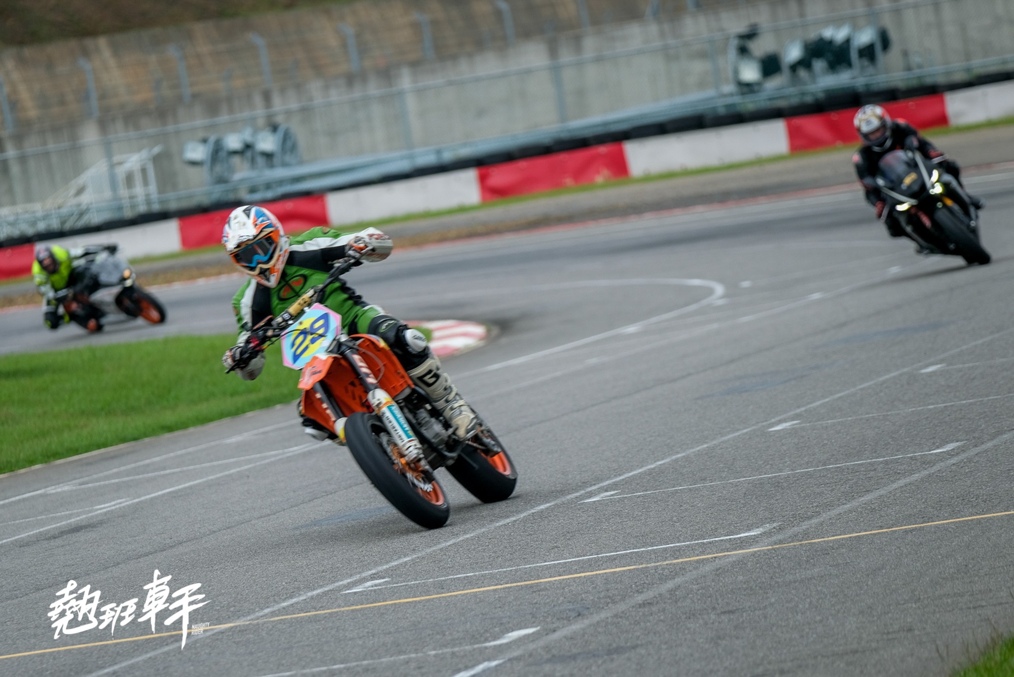 而由Supermoto8所主催的「蹺班車手練車日」,顧名思義,這個活動是講求經驗者在多彎刁鑽的小賽道中尋找感覺,練習技巧為主要核心價值的賽道體驗活動。但一方面,也因為活動主場地是以卡丁賽道為主的小型賽道練車活動,入門門檻又比一般大型賽道日要低,所以TA就會比較兩極,一種是來練車的高手高手高高手,一種是賽道嚐鮮完全沒有經驗的初出茅廬。也因此,在「蹺班車手練車日」的活動中,TA的廣度很大,但相對每個人的實力與速度也就有著較為巨幅的落差。