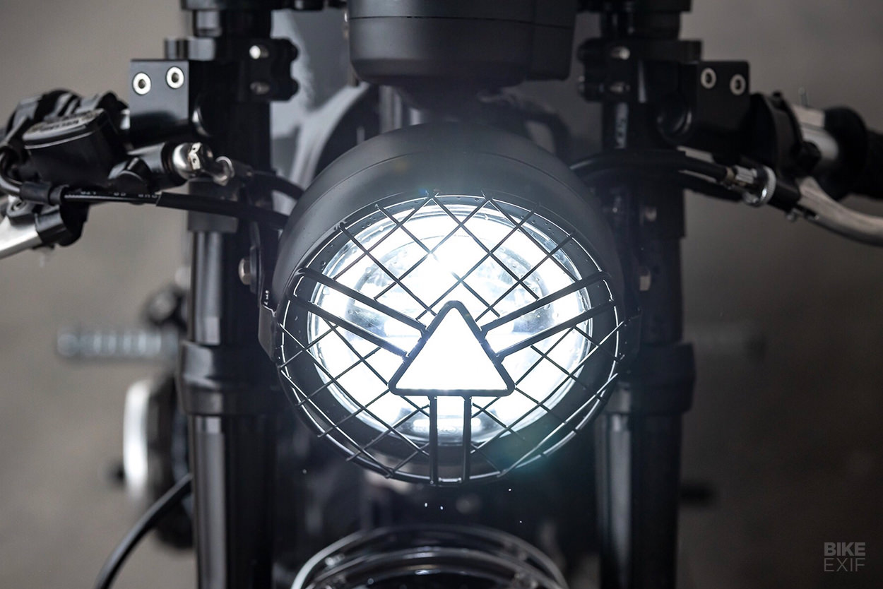 最後一項外觀套件則是超殺的車底整流罩,當然,這也使用了ABS耐磨塑料打造,小而精銳,Gorilla Racer帶點街頭霸王的客製短管也同時證明了這一點。CNC加工而成的後支架配合碳纖維板件,兩側保留LED方向燈拽,同時也更換了新的鏈條與齒盤。Gorilla Racer最終的手續,就是選擇車色:Lambo Grey水泥灰,並且搭配大量零組件黑化作對比色處理。