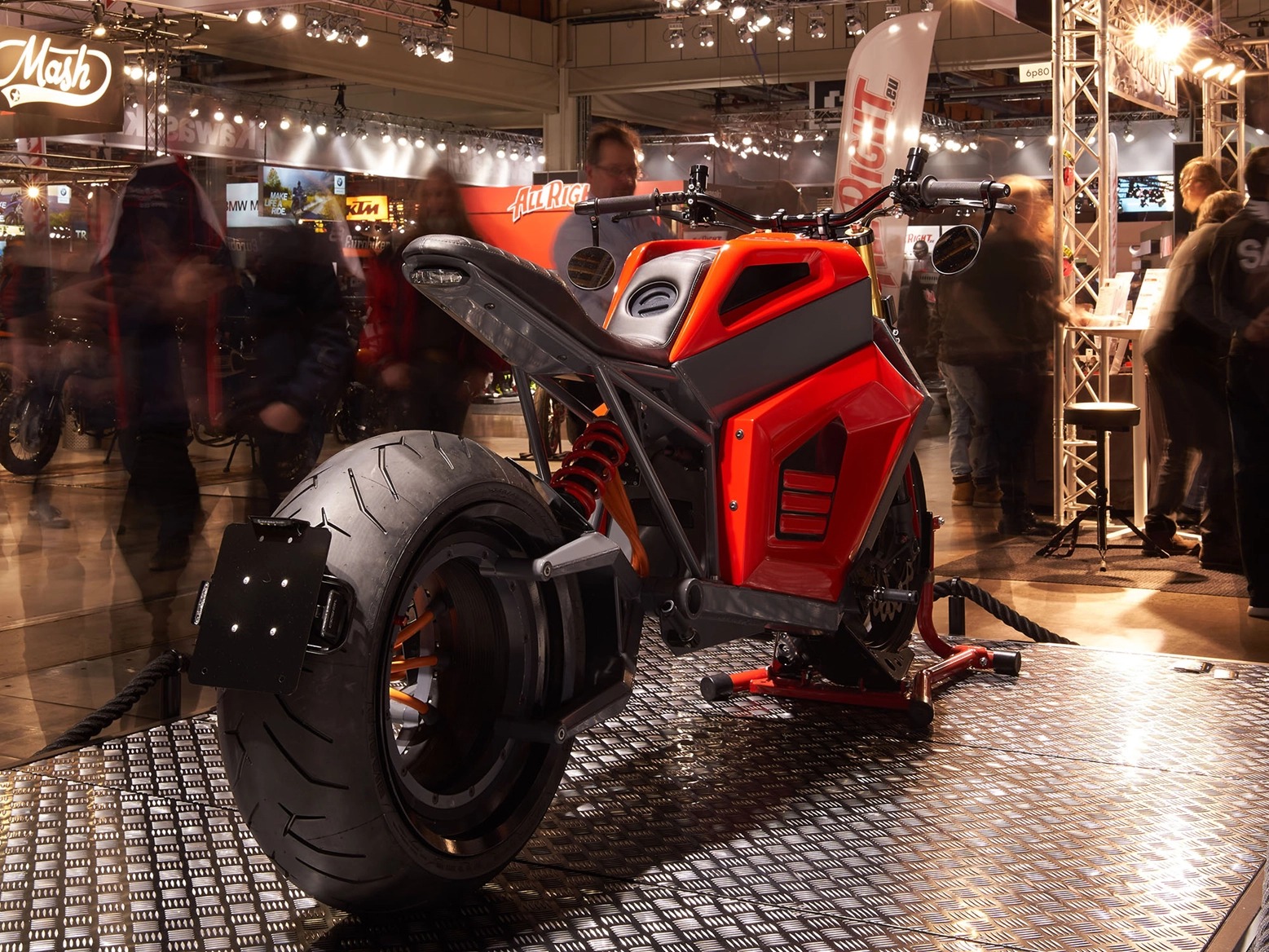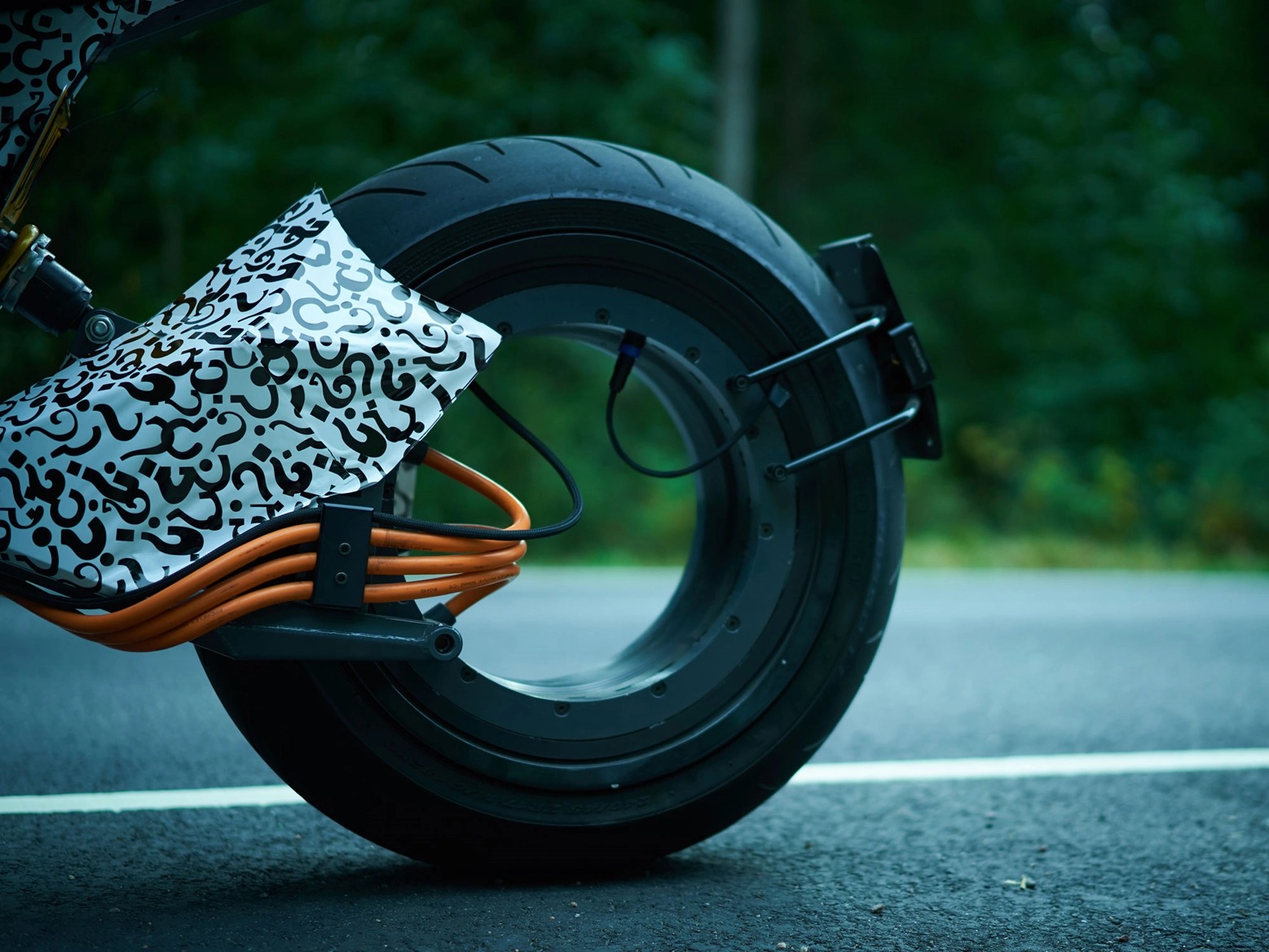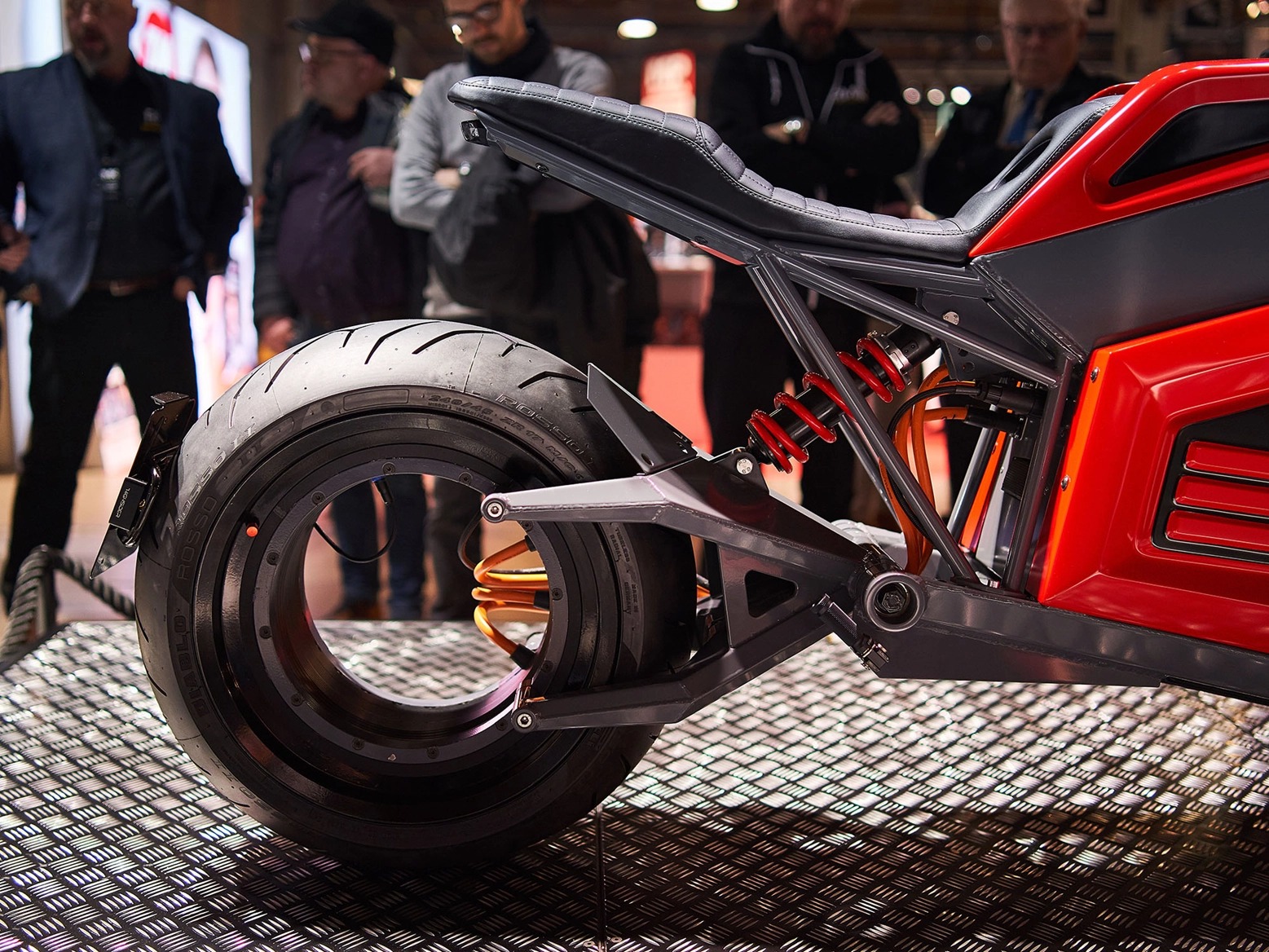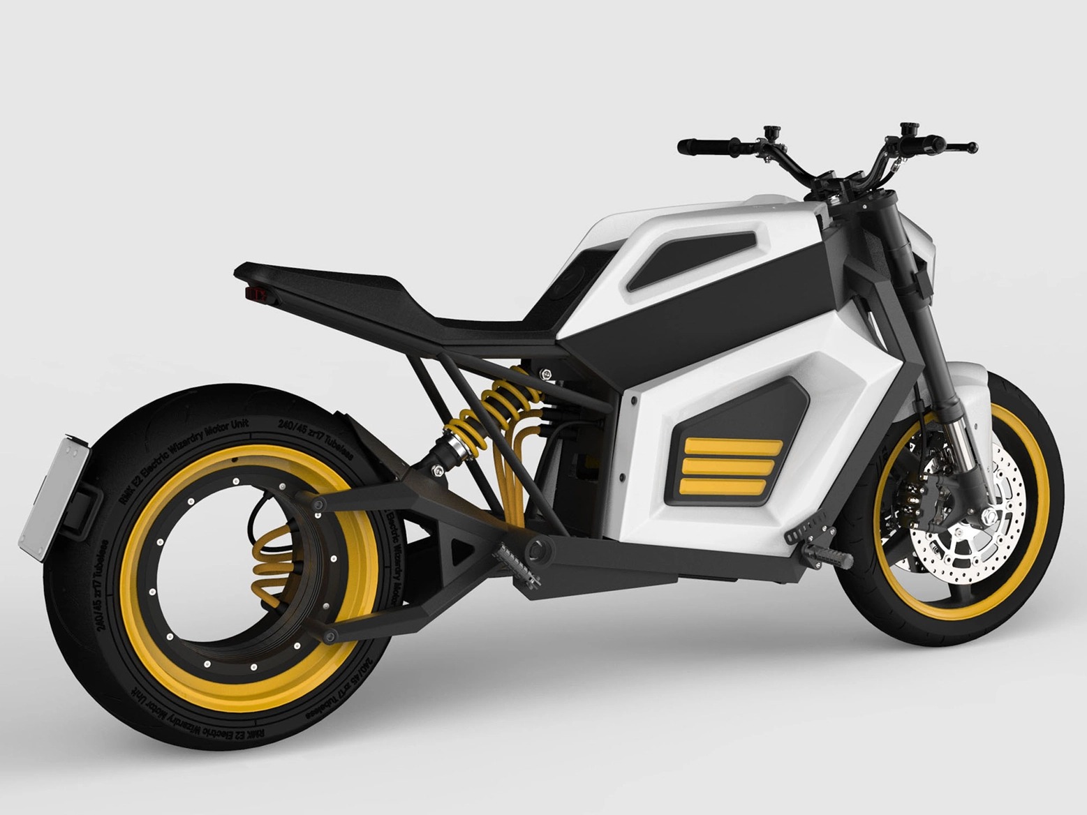 這輛車第一次以概念的型態出現是在8月的時候,當時就以無輪轂且相當完整的狀態呈現這輛車,官方更表示他們其實已經做好大部分的準備,在各部件方面都已經完成了量產準備,在後輪的部分有三條線負責傳輸電力,而整個後輪框的部分皆是電動馬達,據稱因為這樣的設計將車重減低至200kg以下。