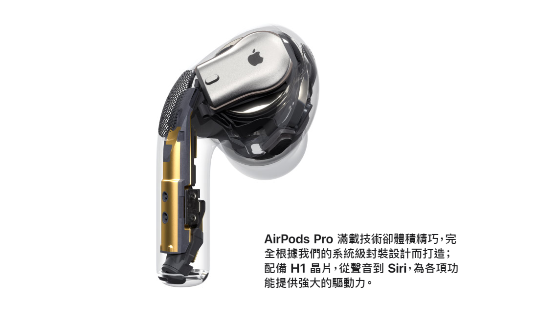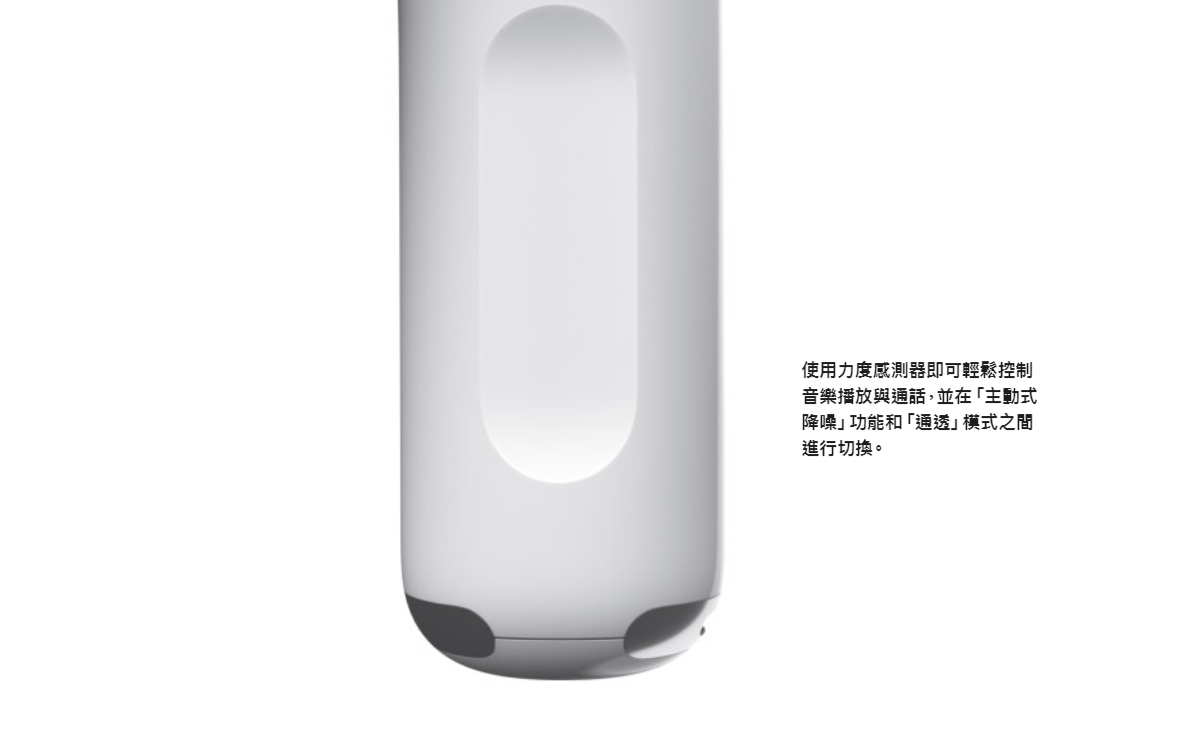 AirPods Pro由於改成耳道式耳機,可能會有使用者擔心聽不到外界聲音,這點APPLE也已經想到解決方法了,AirPods Pro只要輕輕一捏,就能快速切換主動降噪模式跟通透模式,通透模式顧名思義就是讓使用者清晰聽到外部聲音,自然且沒有壓迫,用的是相反於主動降噪功能,通透模式會收集外部聲音,並經由H1晶片控制其聲音大小,清晰而不刺耳的通過耳機呈現給使用者。
