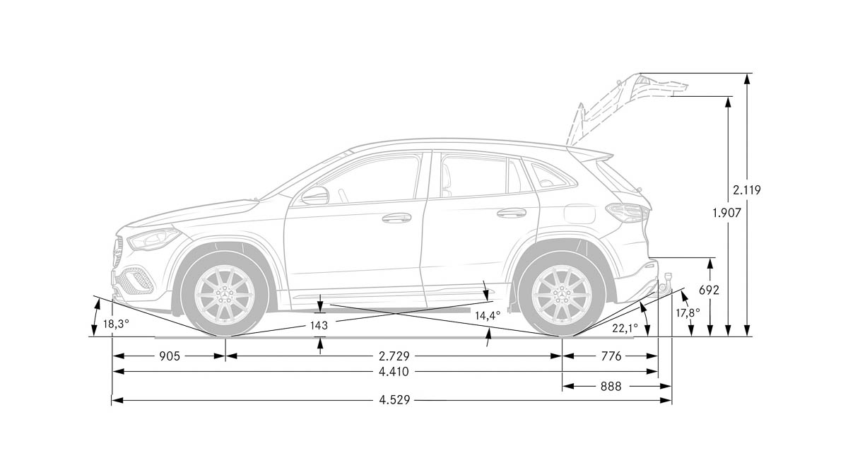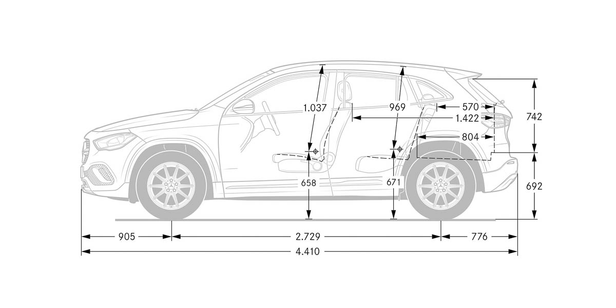 這次的GLA比起上一代車型還要高上10mm,同時也更短、更寬一些,因此讓他成了有點方正的樣貌,總之更像是休旅車了,最新的車身尺碼為4410 x 1834 x 1622mm,軸距為2729mm,這樣的改變讓腿部的空間增加了116mm之多,代表著這輛車更加實用,同時寬度增加的情況下,舒適度也將會提升不少。