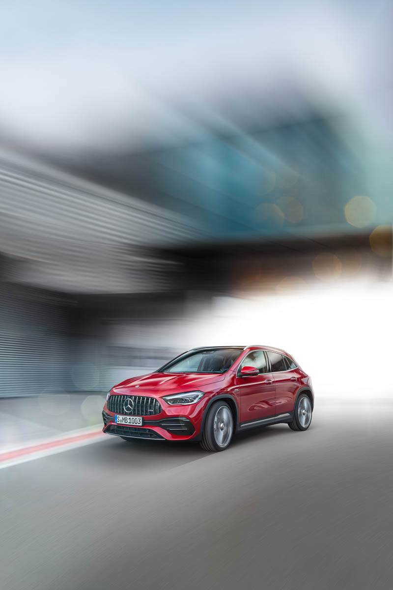 隨著新一代的GLA推出,AMG家族也增添了全新成員,GLA 35也一併在這次的發表會當中亮相,這也是Mercedes-AMG當中第七個擁有35車型的車款,同樣都擁有著2.0L直列四缸渦輪增壓引擎,擁有306hp/40.8kg-m的最大輸出,搭配AMG Speedshift DCT 8G雙離合器變速箱與四驅系統,百公里加速可在5.1秒內完成,極速則為電子限速250km/h。