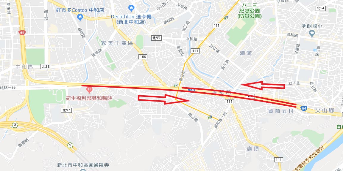 這波安裝區間測速的路段位於台64線中和段,東向25.2k至28.2k、西向26.6k至28.2k,以及靠近台64新店端的新店環河路(中央路至白馬寺段),這也是全台首創區間測速的新北市政府警察局繼萬里隧道、北宜公路後,再次增添的區間測速裝備。