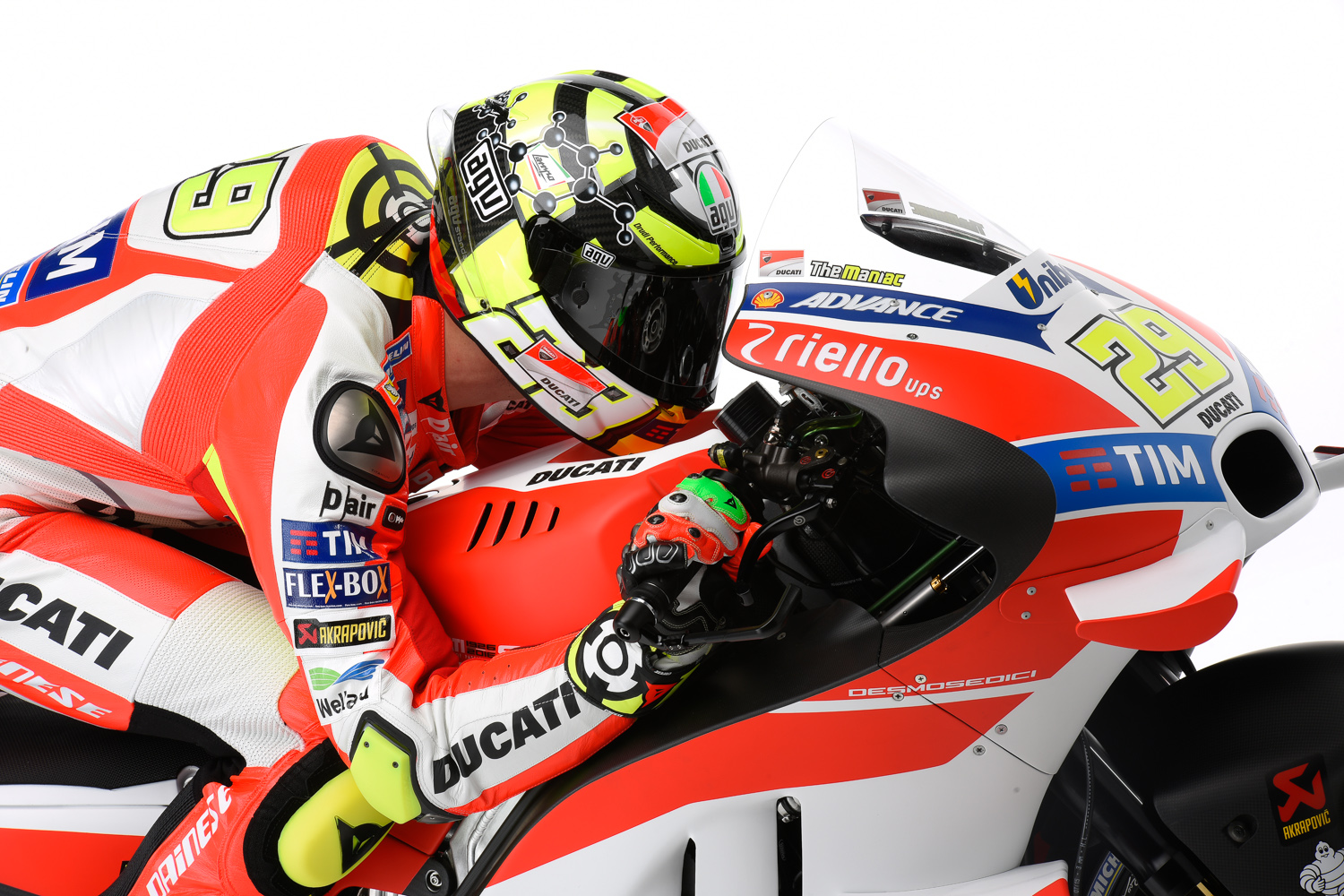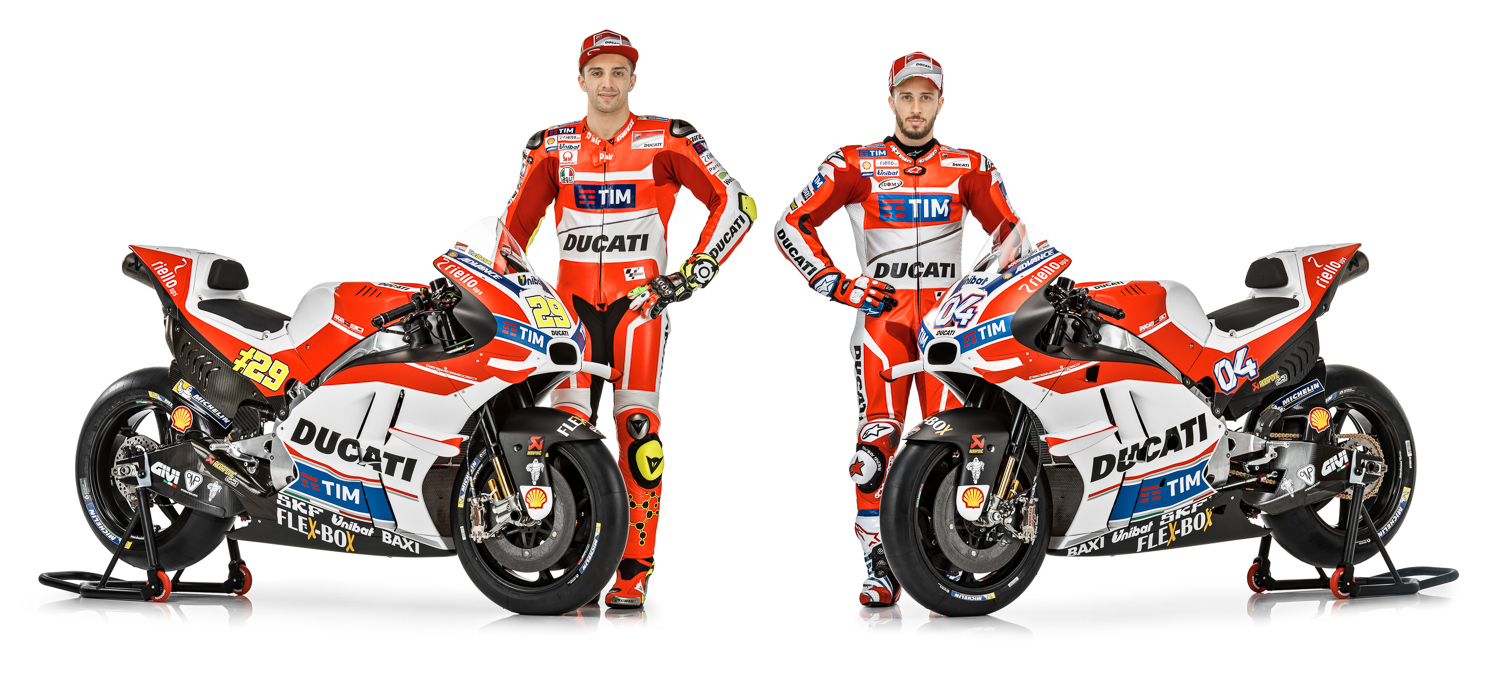 上週菲力浦島測試還頂著碳纖維素殼在賽場上奔馳,本週MOTOGP 主力廠隊之一的DUCATI終於對外發佈今年(2016)的彩繪,車手陣容依舊是義大利的Andrea Iannone搭配義大利Andrea Dovizioso。