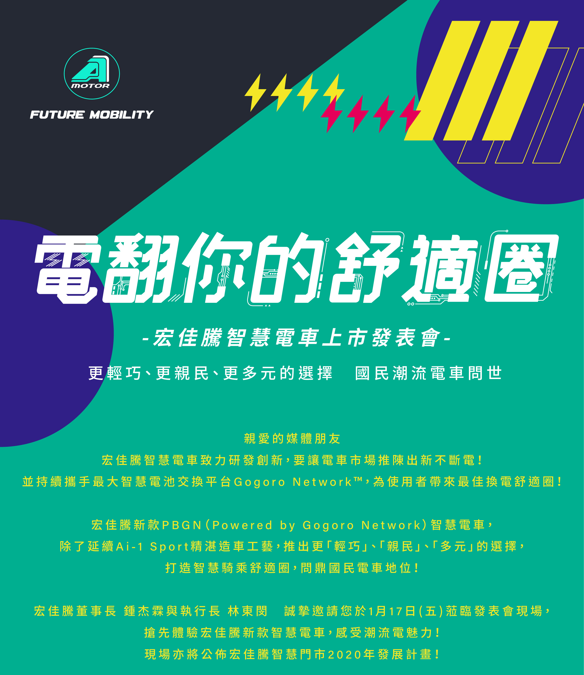 宏佳騰在去年八月推出旗下首款的電動機車「Ai-1 Sport」之後,迅速的在電動車市場上,獲得不少粉絲的親睞,宏佳騰也趁勝追擊,迅速宣佈推出旗下的第二台電動車,這台主打「更輕巧、更親民、更多元選擇的國民電動車款」,預計將在1月17日正式發表!