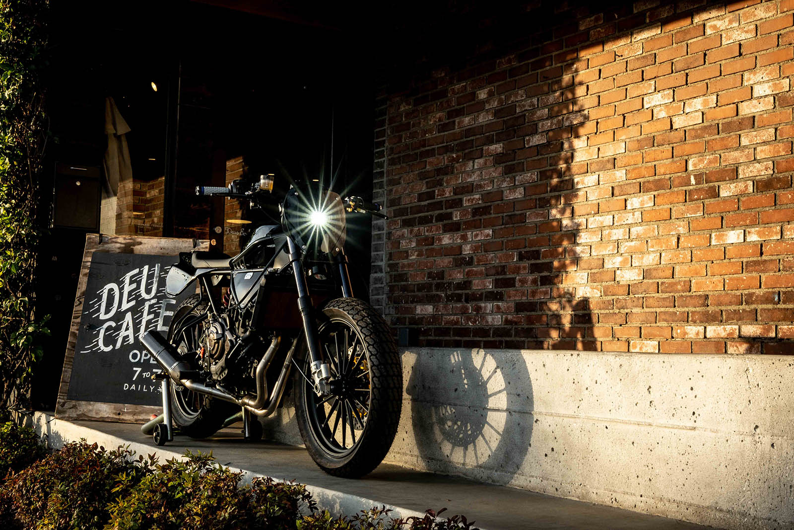 YAMAHA MT-07的熱銷程度也間接轉變為他在改裝市場的熱門程度,甚至因為其街車特性也成為Flat Track改裝風格的熱門素材之一,今天要介紹的改裝作品來自知名工作室Deus,設計師正是大名鼎鼎,先前打造過Alpinestars 55週年紀念車、Dani Pedrosa退休禮物的Michael Woolaway!