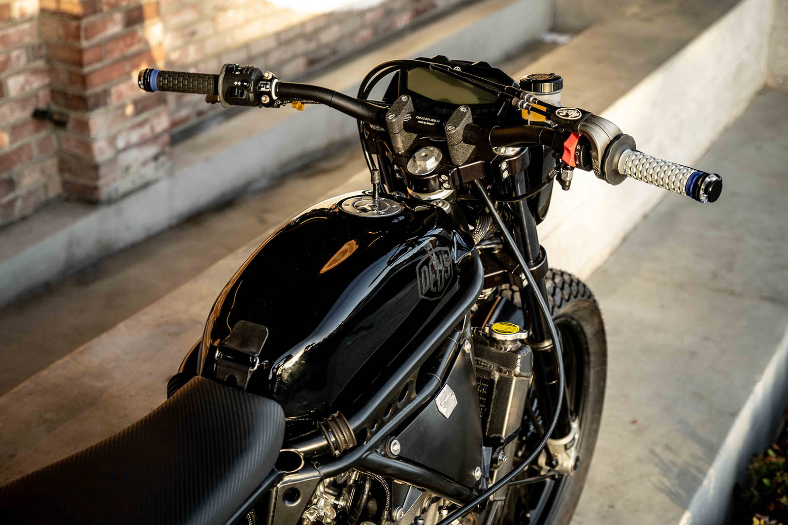透過照片,我想眼尖的朋友除了引擎以外,幾乎看不出這是輛MT-07。首先車架換上全新的訂製版本,且該車架是委由進入AMA名人堂的Jeff Cole打造,透過他豐富的打造Flat Track車架經驗,為THE FRAME設計全新骨架,可以看到在油箱兩側還加上了提升保護性設計。