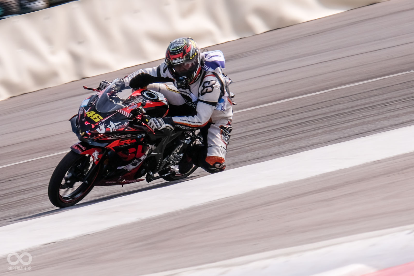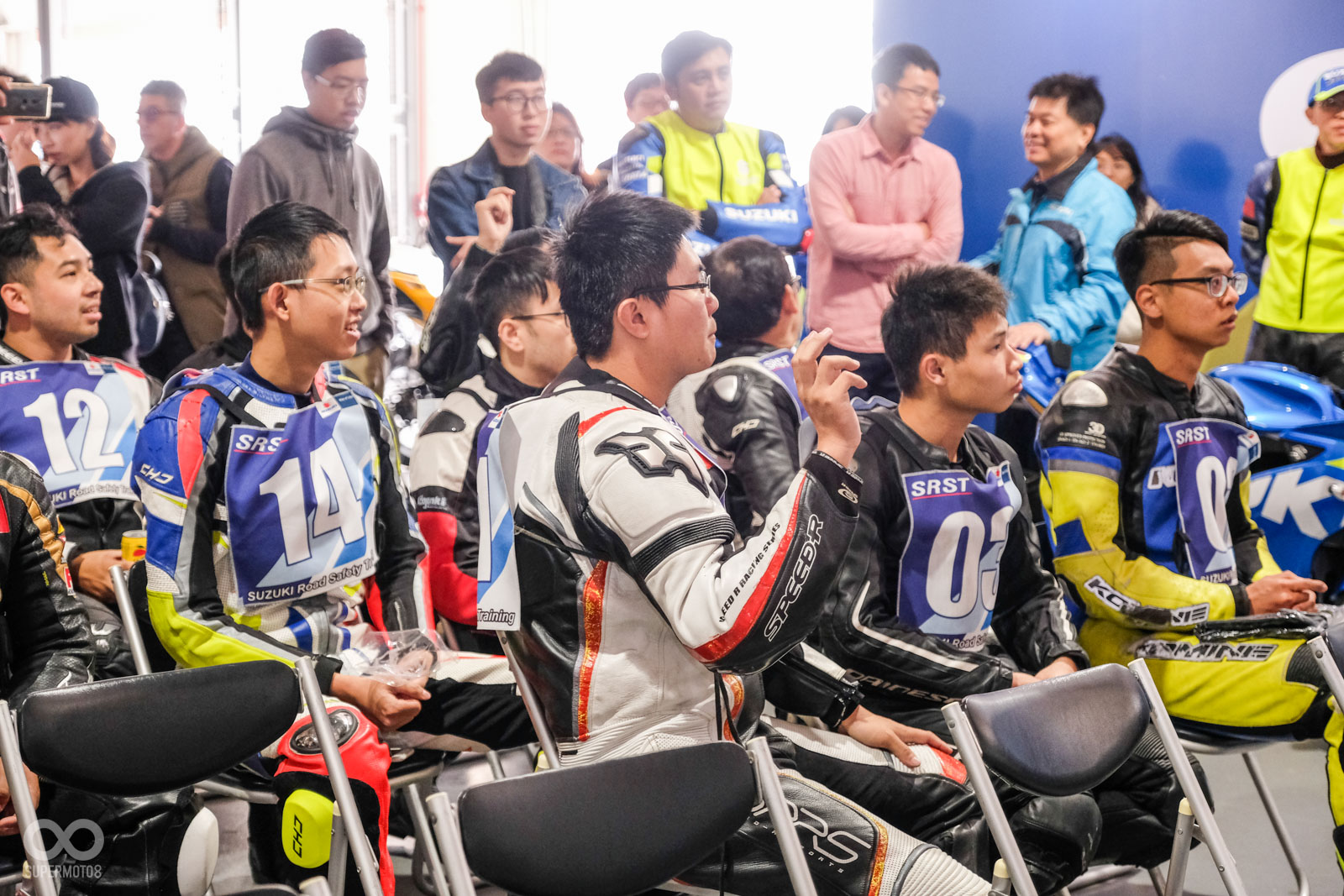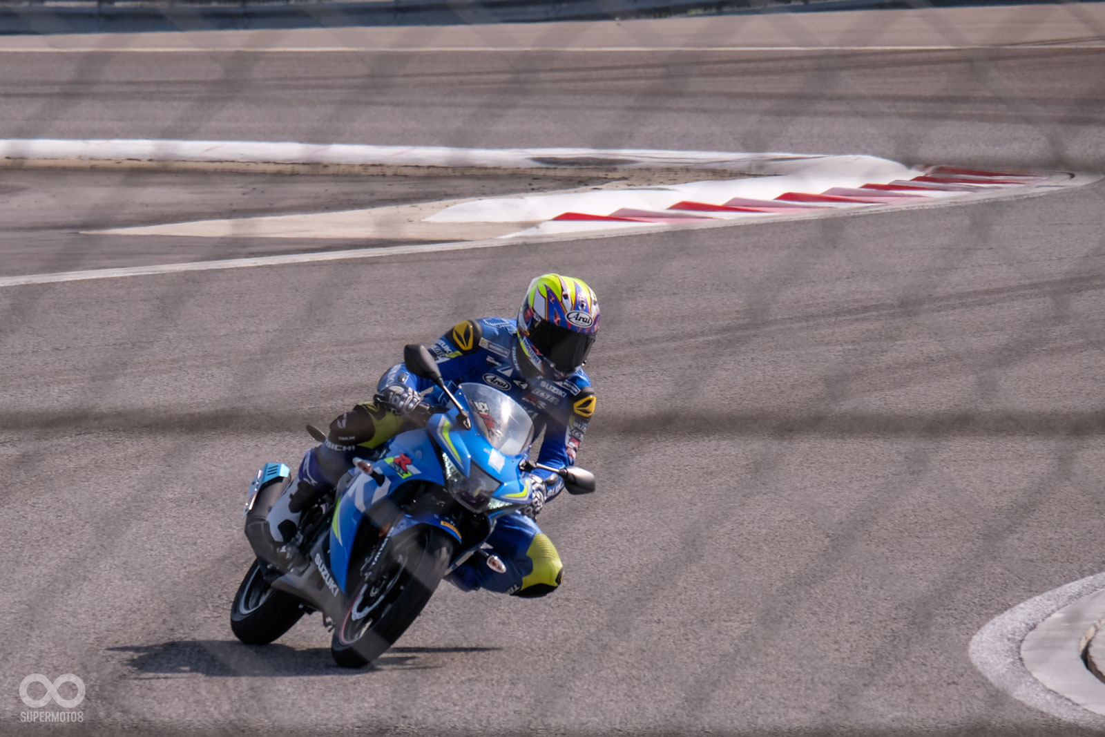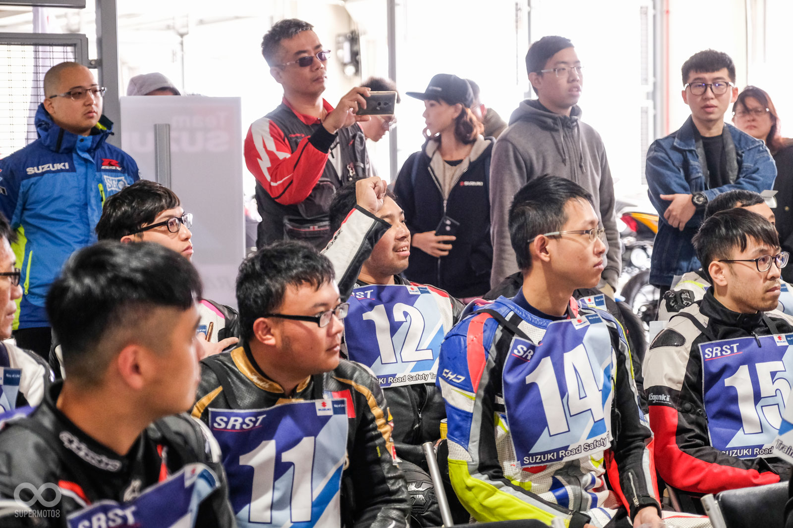 筆者要特別描述一下這個環節,青木宣篤選手不只在賽道上不斷觀察大家的騎乘動作、煞車點以外,有時也會停在賽道緩衝足夠的空曠處檢視每位學員的過彎姿勢,另外在講解區也放置一輛GSX-R 150讓青木宣篤選手可以隨時示範需要改進的重點。並透過三次的騎乘、改進機會給予車友回饋,確保學員可以穩定進步並且找出自己的問題點。