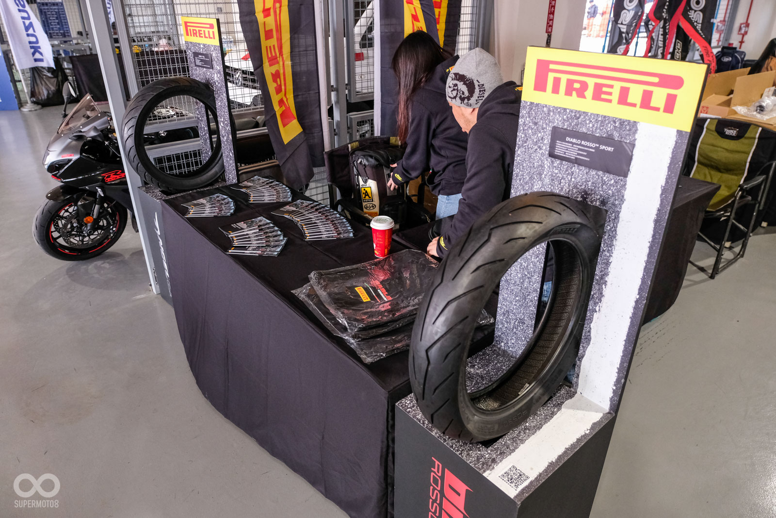 除了活動讓許多小阿魯車主可以安全地體驗麗寶賽車場大賽道以外,現場也邀請幾間周邊產業廠商到場提供車友支援,首先是想要精進自己騎車技術,必定先改裝的輪胎廠商Pirelli台灣總代理好運車業,現場帶來目前討論度極高的ROSSO SPORT輪胎展示,也提供安裝Pirelli輪胎的車主專屬束口包作為紀念品,另外Pirelli也提供現場所有台鈴工業的教練車、媒體試乘車前後輪的ROSSO SPORT輪胎支援,讓教練與媒體可以盡情享受賽道樂趣。