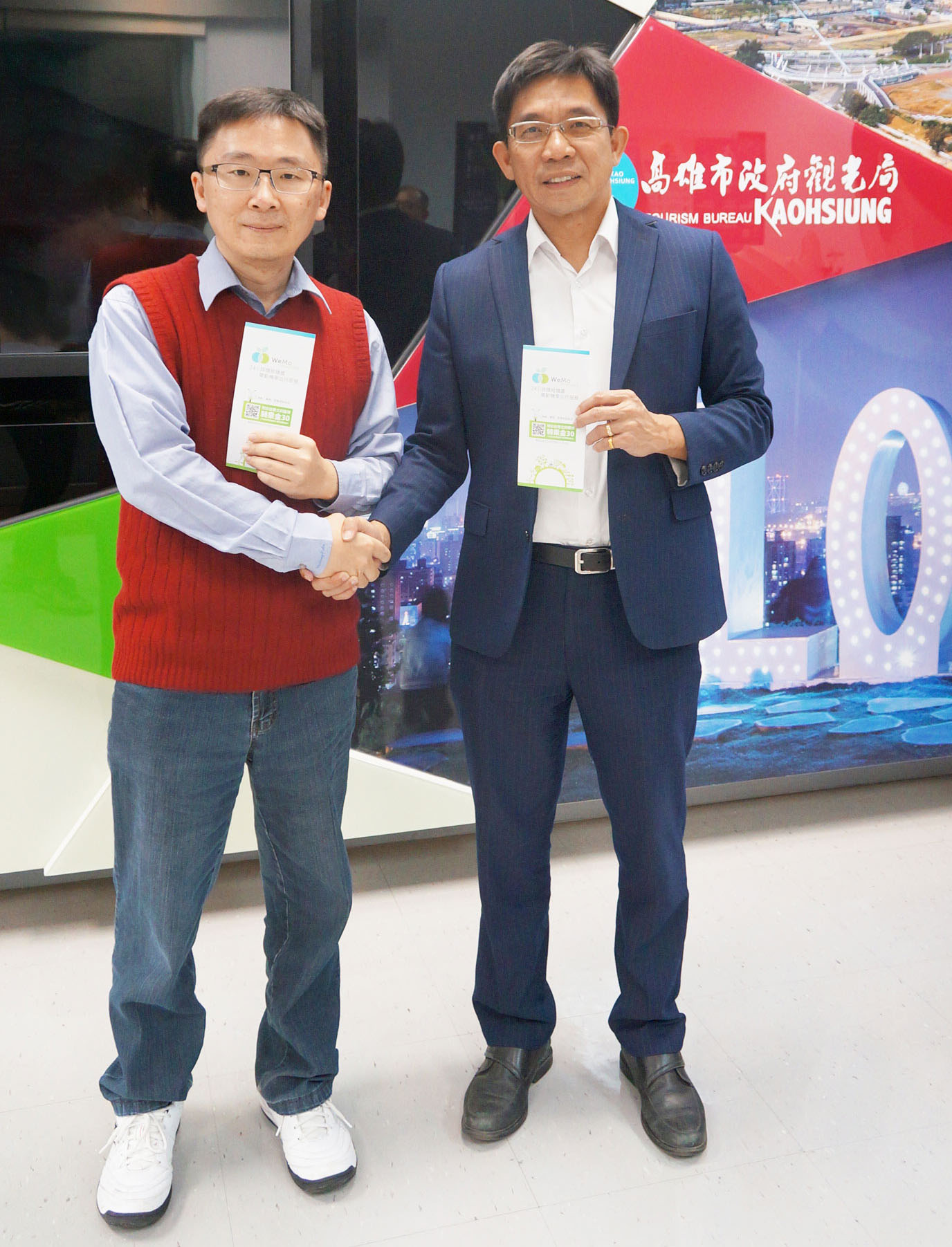 看準觀光交通綠能新潮流,高雄市政府觀光局更首度攜手共享機車服務合作,此次與 WeMo Scooter 簽訂合作備忘錄,旅客僅需下載 WeMo Scooter APP,即可在觀光景點輕鬆一鍵租還車與付款,車廂內備有兩頂安全帽,並享有合作停車場,未來更將結合「高屏澎好玩卡」,打造智慧與經濟實惠兼具的綠能觀光交通服務,加速高雄智慧綠色觀光城市發展。