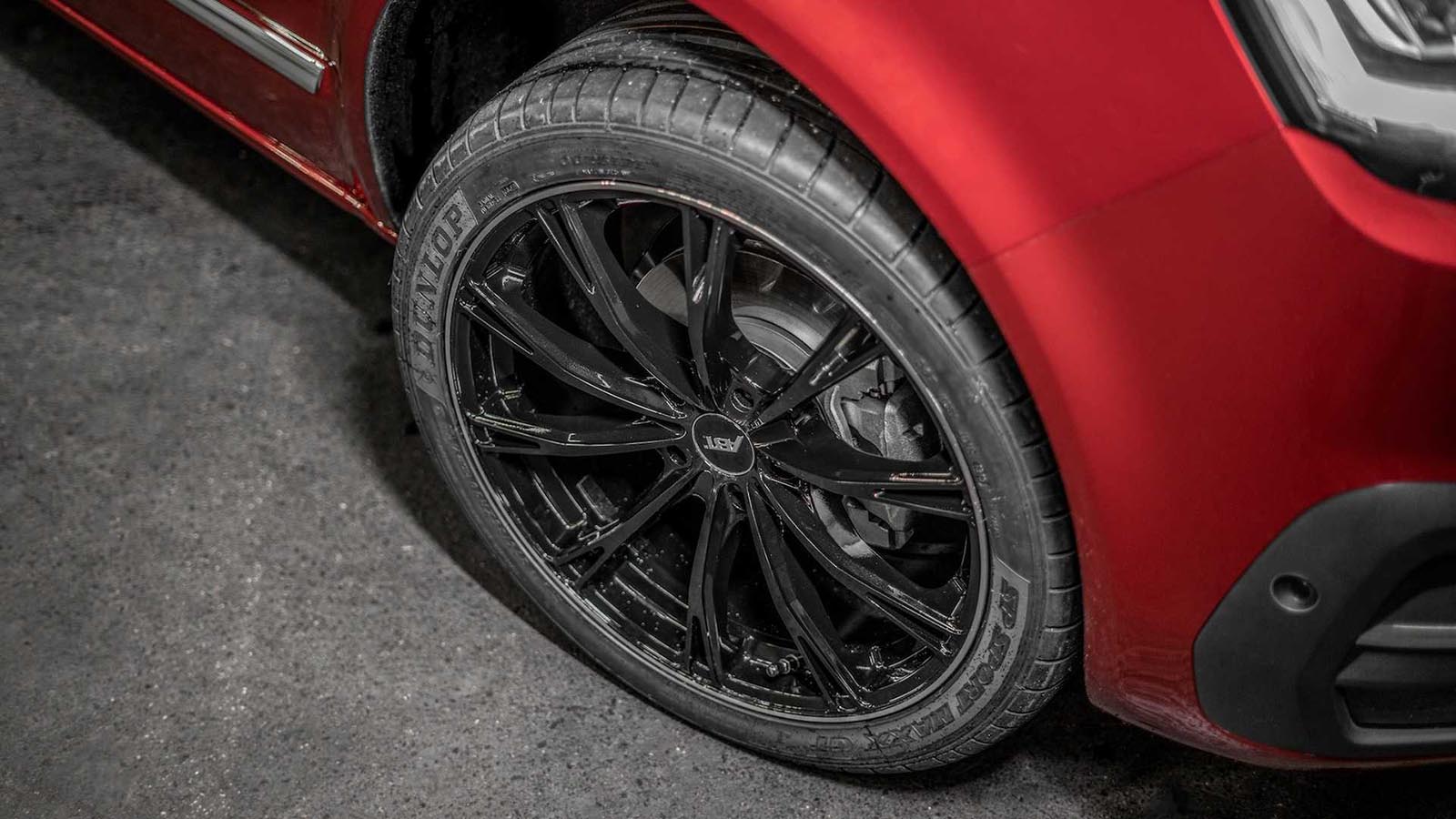 較為可惜的是,由ABT公布的T6.1改裝車並沒有加上大包或尾翼等浮誇的配件,但輪圈提供19/20吋兩種選擇,且皆可搭配亮光、消光黑兩種呈現方式,全車換上ABT Sportsline避震產品且該套件是由Bilstein生產製造的高低可調避震器,原廠宣稱這組避震可讓駕駛體驗到無與倫比的輕巧與精細度,高度可在40mm~70mm之間調整。