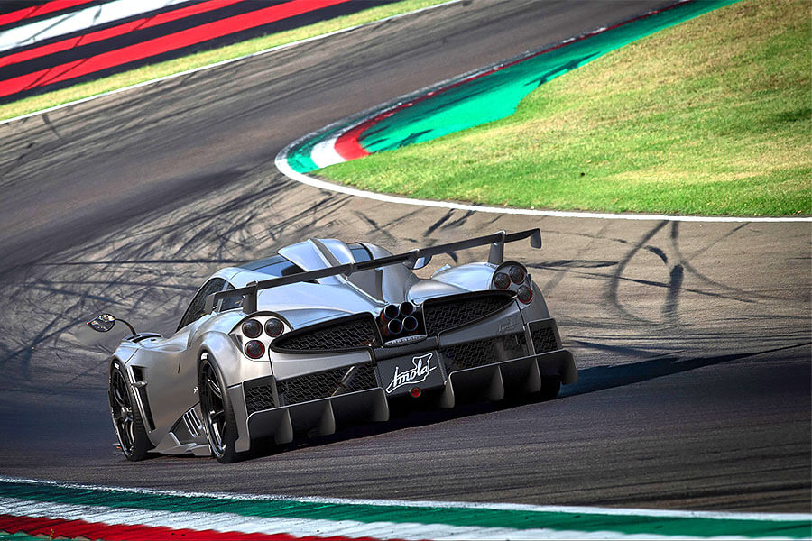 動力部分,Pagani Imola搭載Mercedes-Benz 6.0升V12雙渦輪引擎,經過最新的調教後,馬力數據來到827匹、112.2公斤米,同時搭配上Xtrac 7速序列式自手排變速箱;車身上配有大量浮誇的空力套件提供強大下壓力,輪胎配上PIRELLI前20吋、後21吋的半熱融胎,提供靈活、優秀的動態表現。