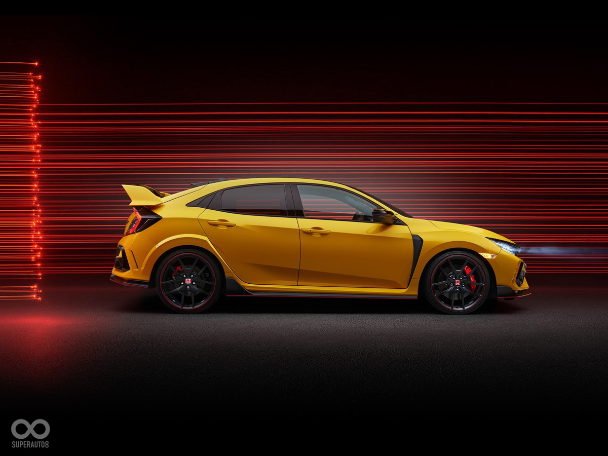 首先先來說說這輛鵝黃色的CIVIC TYPE R Limited Edition,身披Sunlight Yellow II車色即是90年代老CIVIC那經典的黃色,這款Limited Edition瞄準的是追求極致操控熱血表現的玩家,首先HONDA為其除去了厚重如負擔的車輛隔音材,讓CIVIC TYPE R Limited Edition減輕23公斤,另外後雨刷也被一併取消。