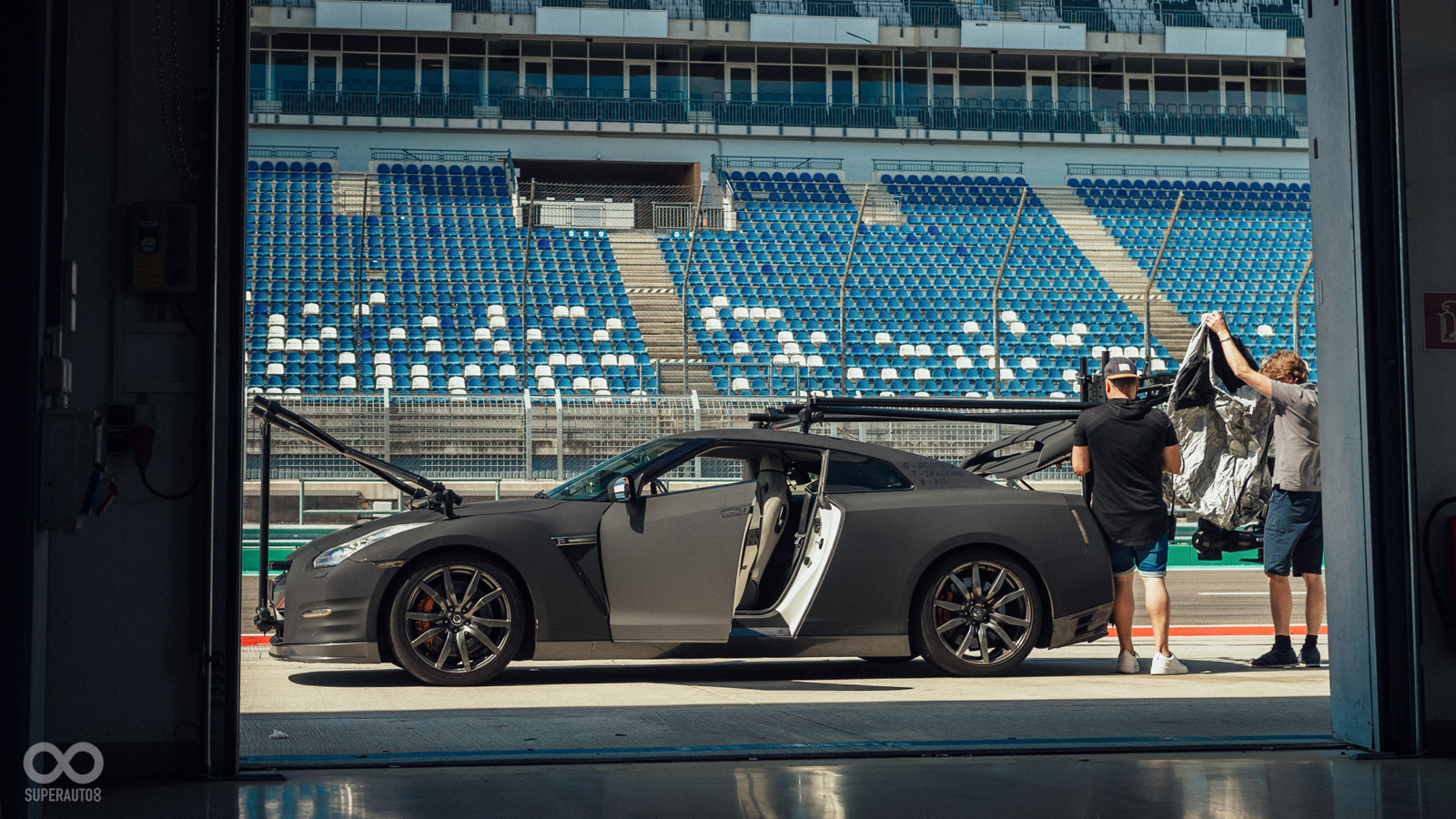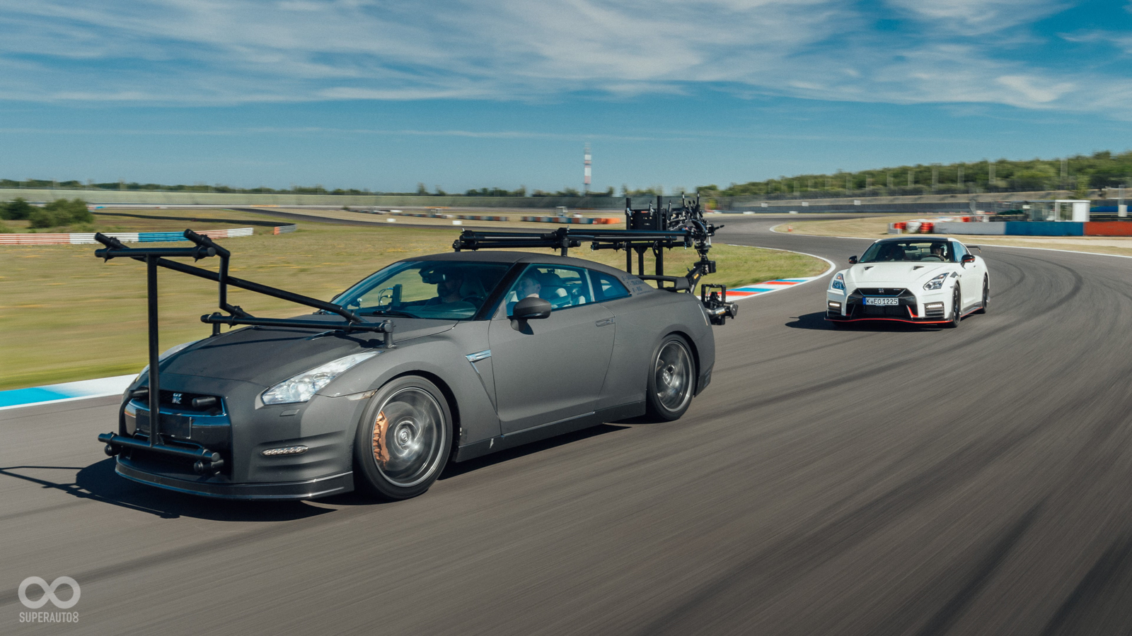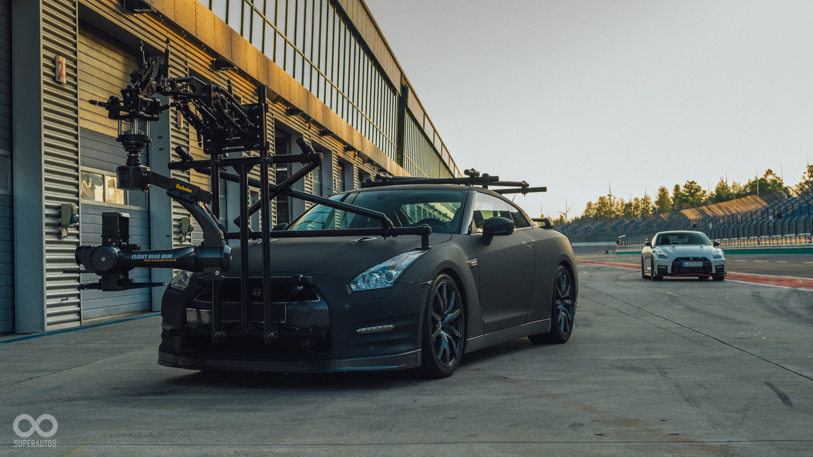 Mauro Calo,一位專業的攝影車駕駛提出這個需求,過往類似的影片採用性能休旅車拍攝完成,即使他擁有較大的車艙空間卻還是免不了高重心帶來的晃動,以及靈活性的限制。攝影GTR就此而生!Nissan特別在R35的尾部焊上碳纖維管狀結構且固定於底盤上頭,加上GTR本身絕佳的循跡性與V6渦輪引擎的強大動力,更不用說大勝SUV的低重心,讓這輛GTR成為稱值得攝影車輛。