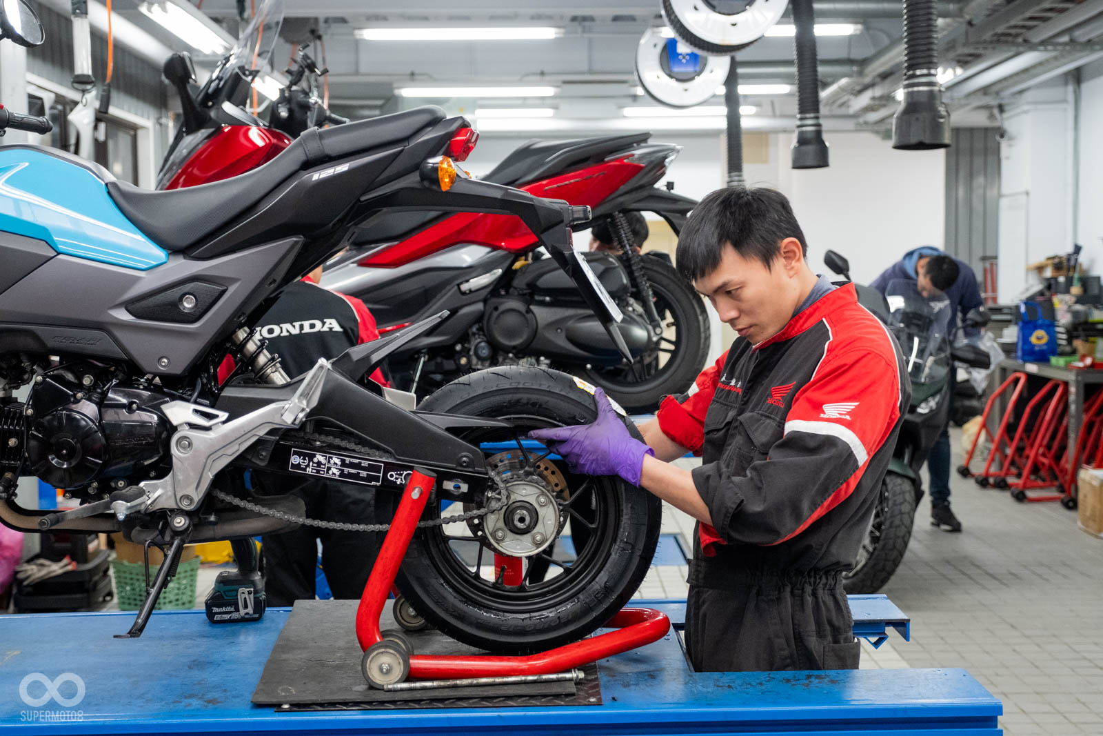 經過台灣本田三重店的技師用心幫我們換上PIRELLI DIABLO ROSSO™ SCOOTER SC前後胎之後,我們也按照HONDA MSX125搖臂上的原廠建議胎壓值,將前後胎都打至29 PSI,來確保輪胎在正確胎壓下有正常的磨耗表現。