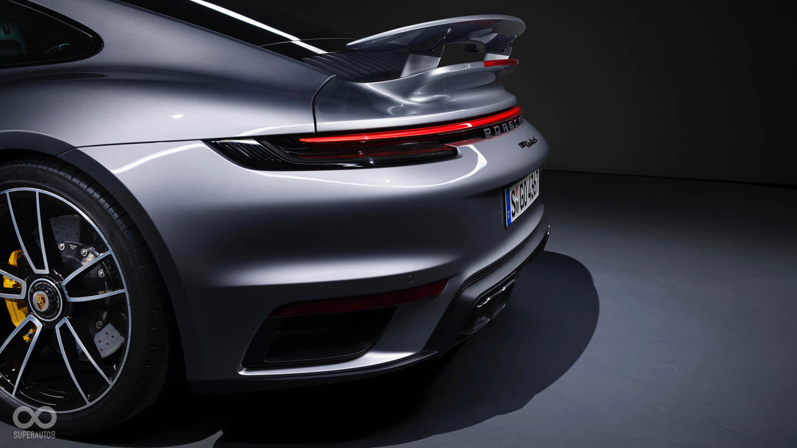 從外觀上來看,新世代的Porsche 911 Turbo S並沒有太大的改變,僅在車寬部分作出些微的增長,前軸車寬增加了45mm來到1840mm,後軸車寬增加20mm,來到1900mm;另外車頭部分更大的進氣孔設計和新全自動空力控制系統,包含自動冷卻襟翼,另外車尾招牌的超大擾流板也跟著車身同步增長,來提供更多的下壓力。
