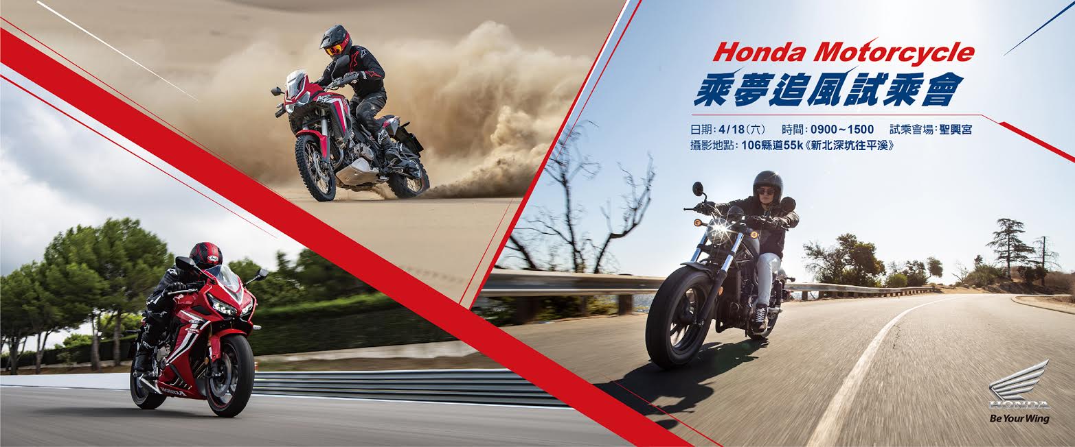 *如本活動因不可抗力之特殊原因無法執行,Honda Taiwan 所屬之經銷商(Honda Motorcycle) 有權決定取消、終止、修改或暫停本活動。試乘體驗規範與活動守則請至Honda Motorcycle官網查詢