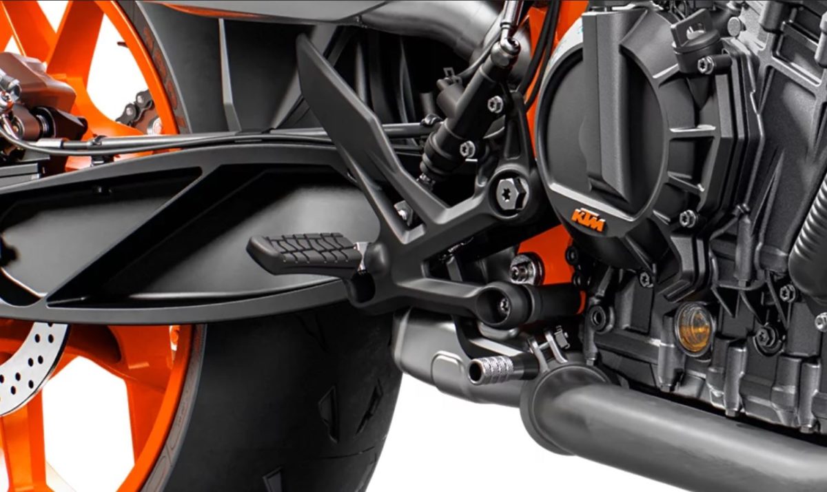 懸吊部分,前叉採用了WP APEX全可調43mm倒立式前叉,同時在上下三角台也使用了與790 DUKE相同的鋁合金材質來取代鋼料,除了輕量化的訴求之外,同時也滿足了全新懸吊設定的柔韌程度與更出色的車身動態反饋。後避震方面則是使用了WP APEX高低速壓縮與回彈可調功能。