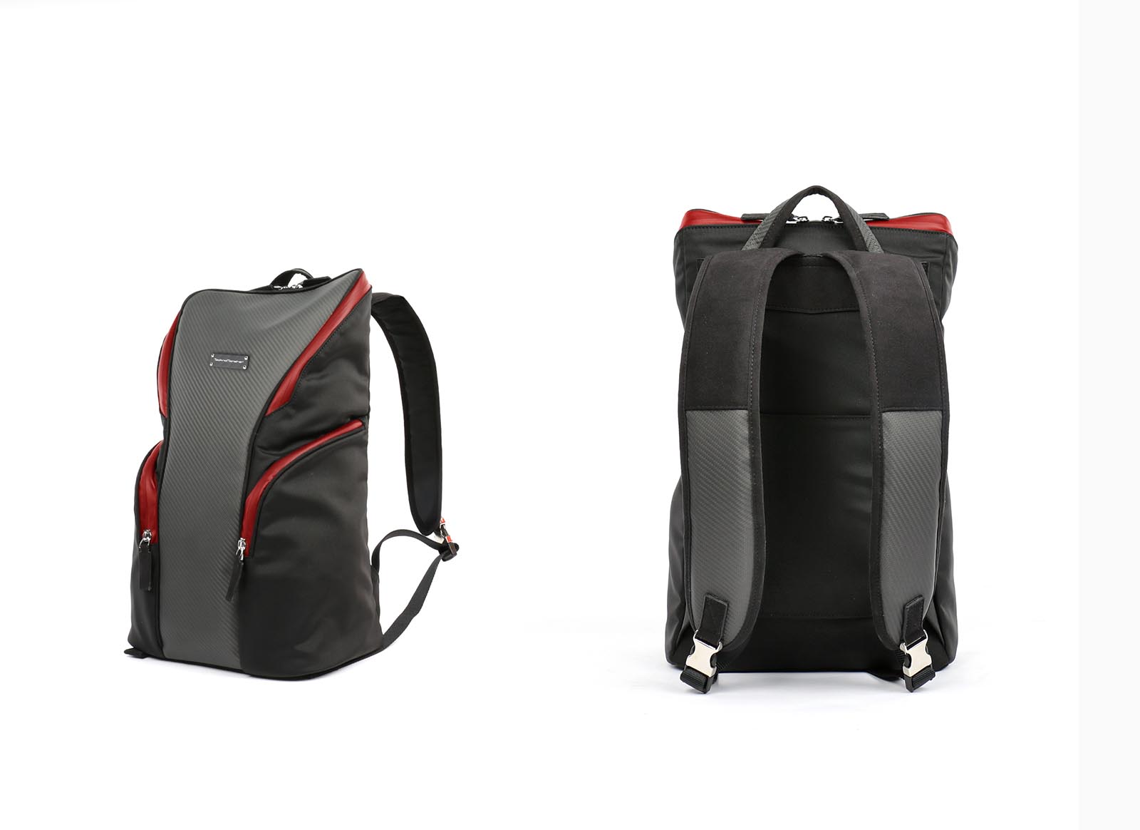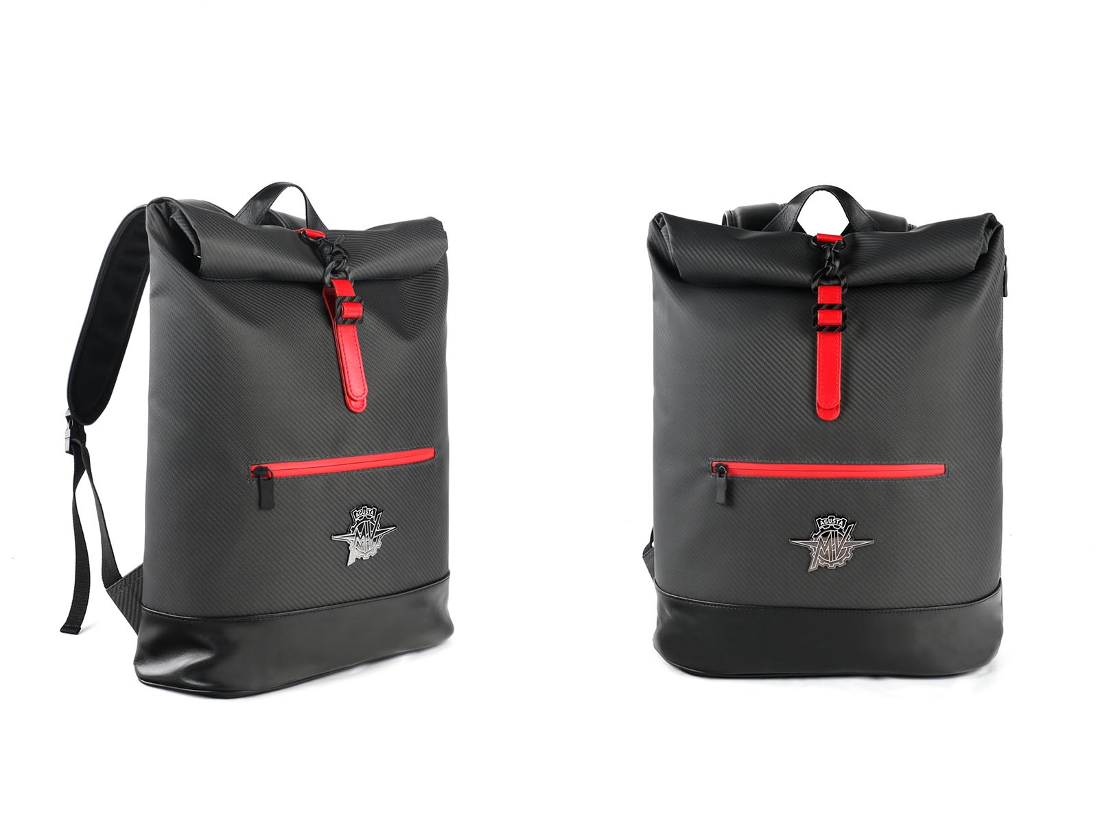 首先我們從天天都能帶出門的背包介紹起,本次MV AGUSTA與TecknoMonster合作推出兩款包款,大小與造型都有著顯著差異,但在表面皆採用的大量的碳纖維布料與極輕的Alcantara皮革組成,確實傳達機車帶給騎士的頂級性能,加上TecknoMonster還在內部採用真皮提升質感,當然全數背包都是在義大利手工縫製完成。