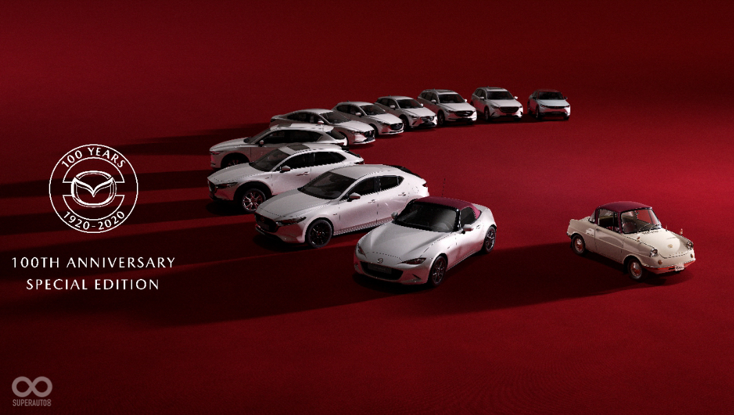 今年為MAZDA創立的第100週年,為感謝長期支持MAZDA的合作夥伴及顧客,並展現持續透過擁車生活為世人開創光彩耀眼人生的決心,近(3)日於日本市場首發開賣MAZDA百週年紀念車款,即日起至2021年3月底於日本市場限時銷售。紀念車款以百週年特別標誌及紅白配色彰顯品牌重要里程碑,同時MAZDA旗下主要車系皆推出百週年紀念車款,並將分階段開放全球各地市場展開接單,以滿足廣大消費者的需求與喜好。而消費者關心的台灣市場,台灣馬自達將會於適當時機另行公布百週年相關慶祝計畫及時程。
