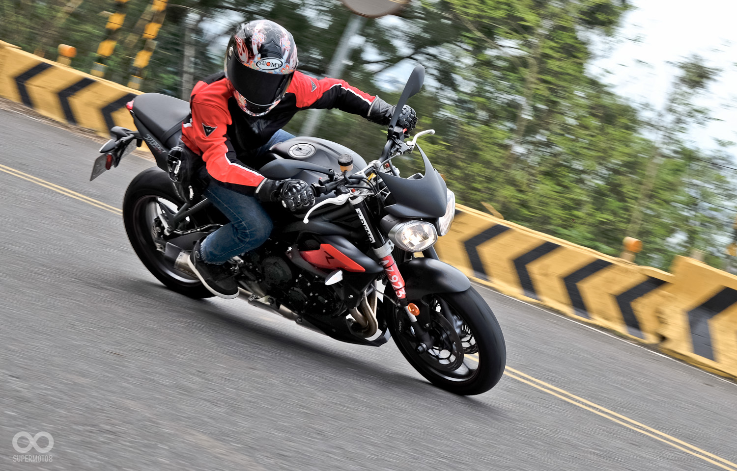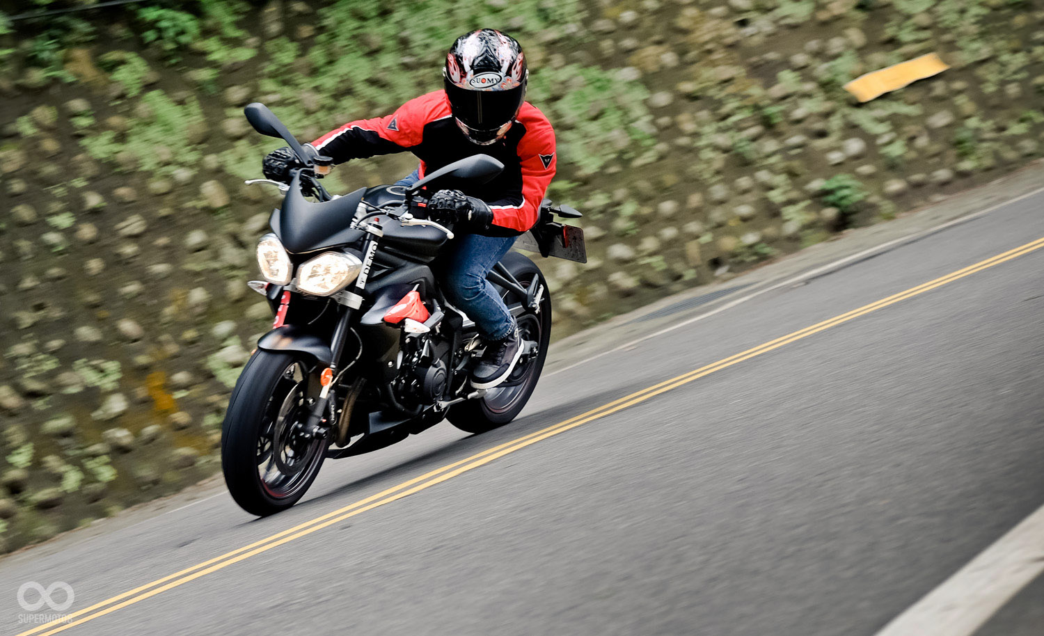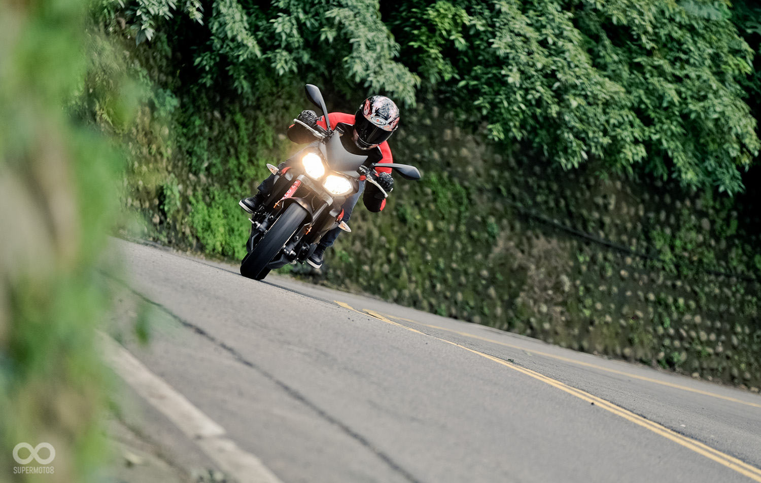 線性的動力輸出與靈活的操控感,騎乘時可以專心在路線的攻略,不知不覺中發現自己怎麼越騎越快,而且還是第一次騎乘這輛車!這反而想起多年前測試某神壇級車款,筆者整整繞了一整趟當時進行試乘的山區才能熟悉並駕馭,所以Street Triple 675 R是一輛任何人都能快速上手的好車。在測試結束後暗自定下一個結論,不論Street Triple 675 R上的是溫文儒雅的騎士、還是時尚裝扮的女車手,當看到這輛車在路上跑,切記對方絕對不會是好惹的角色!