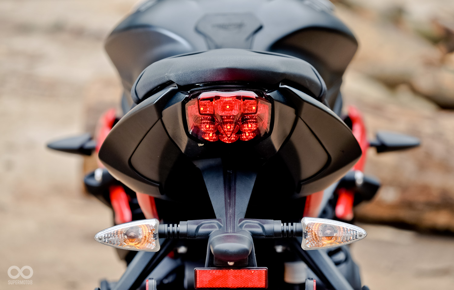 測試當天騎首先在快速道路進行試乘,儀錶板的換檔指示燈維持在原廠設定八千轉開啟,當下只覺得這輛車騎起來非常平順,引擎反應相當線性,只是騎起來有點悶悶的感覺,總覺得引擎好像被封印,感覺就是不痛快,後來索性將轉速拉到近萬轉,後輪的推力湧現後感覺舒暢許多,直到一萬兩千轉斷油前這暢快感一直沒有停止。