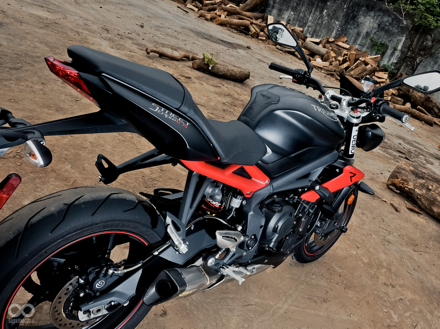 然而凡事都有一個but,三汽缸引擎藉由點火調教可以將運轉特性接近四汽缸引擎,另外換個方式想,在攻略彎道中三汽缸引擎比四氣缸有更好的加速反應,在直線對決中,馬力表現又比同級雙汽缸引擎好,這樣的中庸表現反而是一種得天獨厚的優勢,加上三汽缸引擎比同級四氣缸更小更輕,靈活性也是一大優勢, 因此Triumph Daytona 675早已在各大賽場中展現三汽缸引擎的可怕之處,這輛車更榮獲多次600級仿賽車評比冠軍,而今天要介紹的Street Triple 675 R,正是與Daytona 675共用引擎的雙生車款。