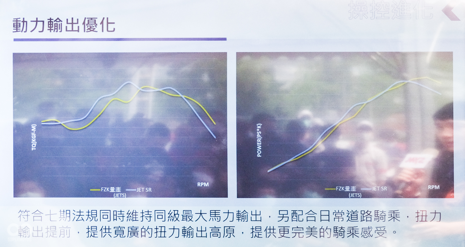 最大馬力方面,雖然JET SR比起六期的JET S少了0.4匹,但是SYM透過扭力曲線前移,讓JET SR在起步後的加速表現上,絲毫不輸給六期車款,在時速30公里左右爆發的加速感,更是讓筆者非常享受、期待每一次的起步加速。