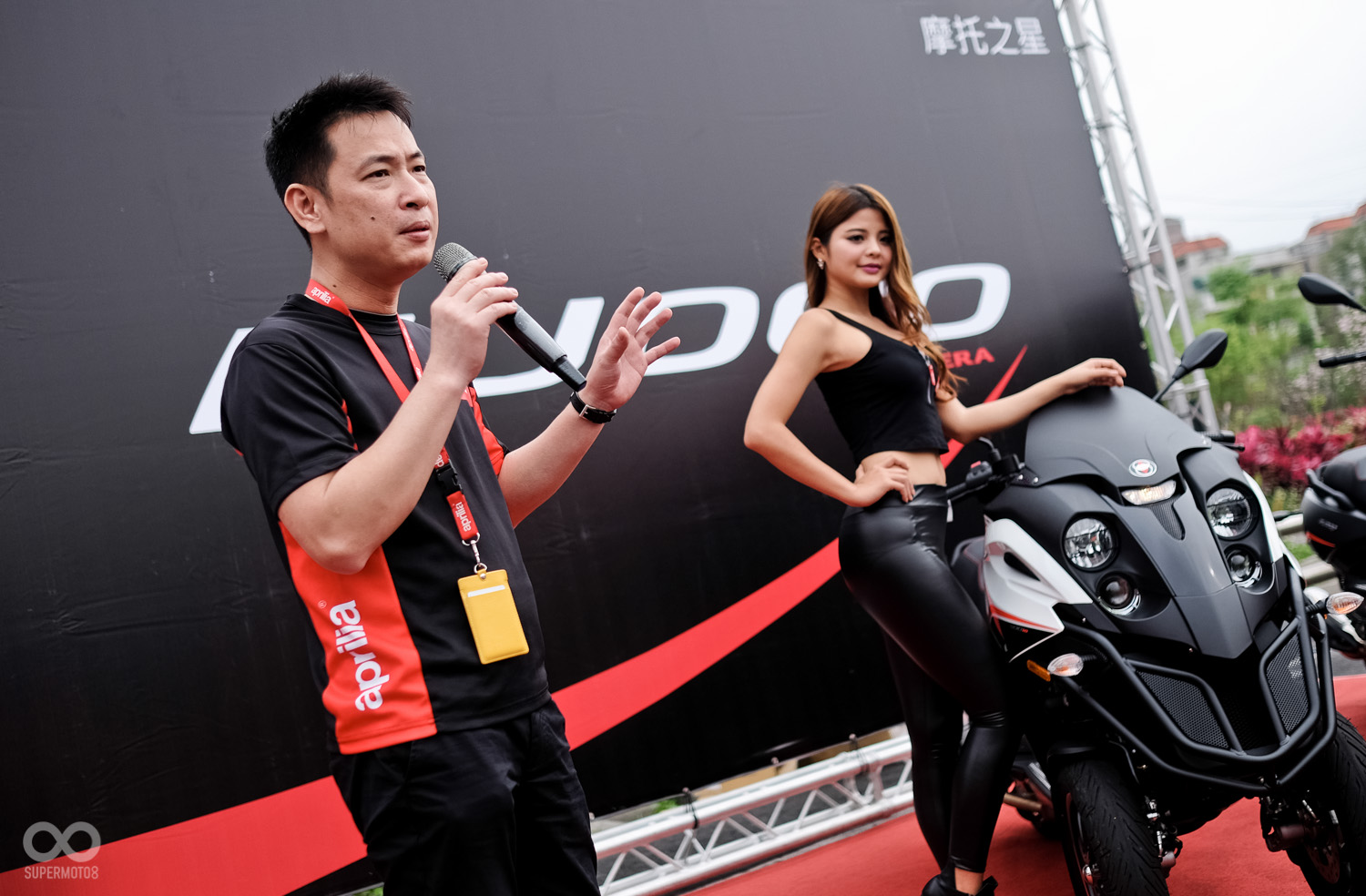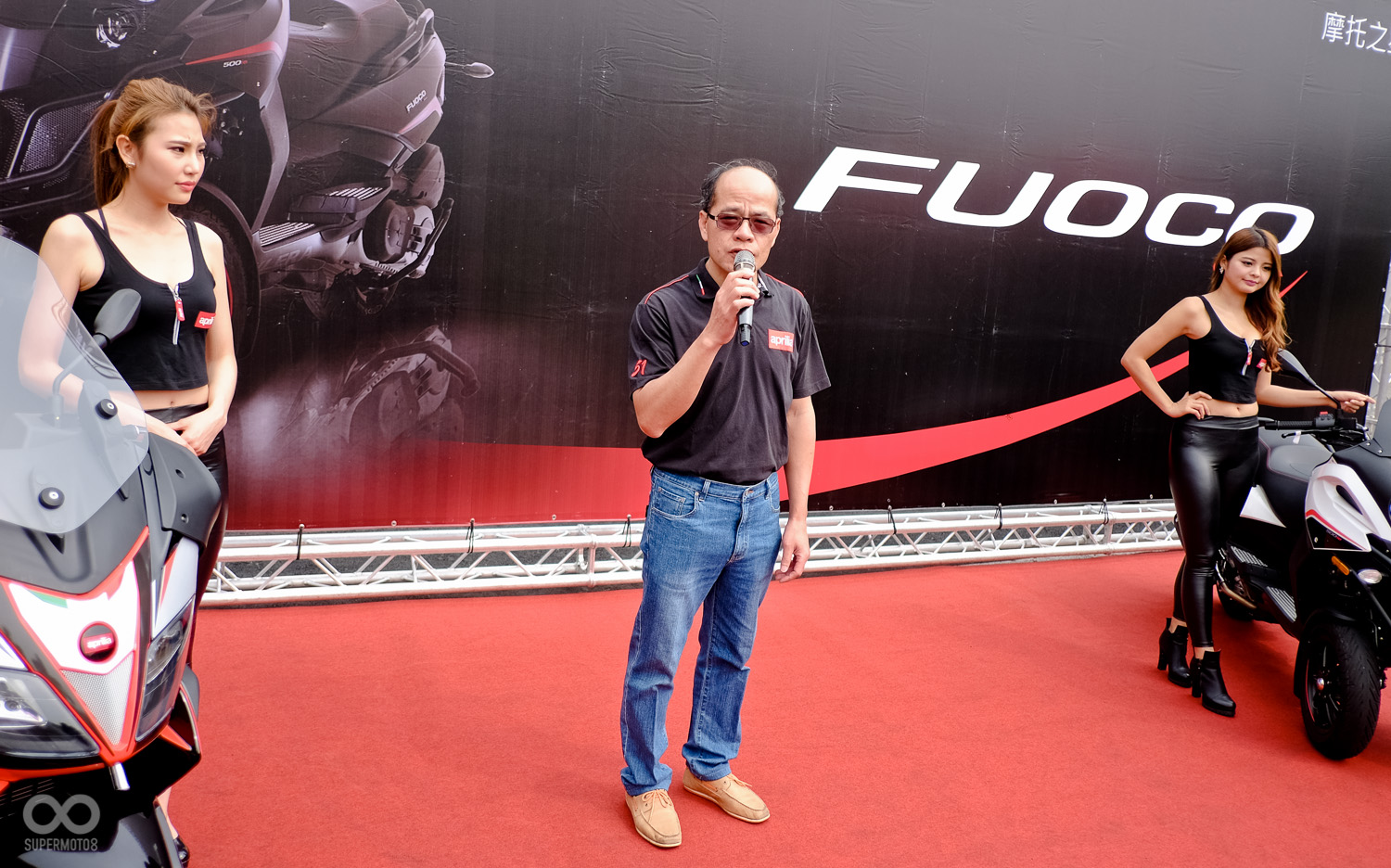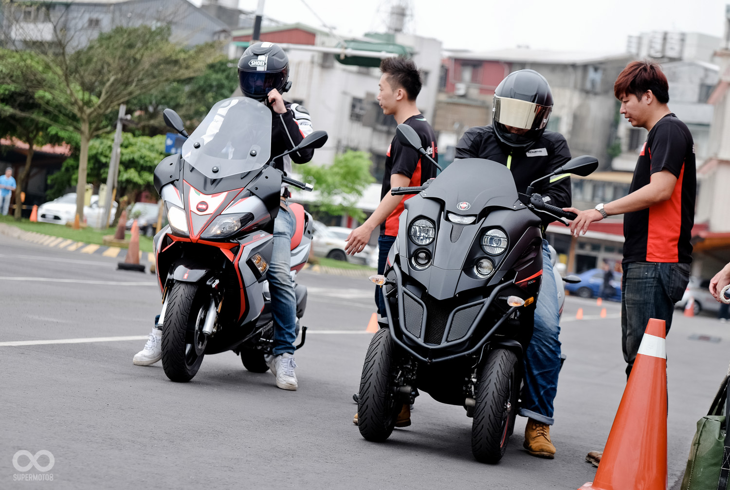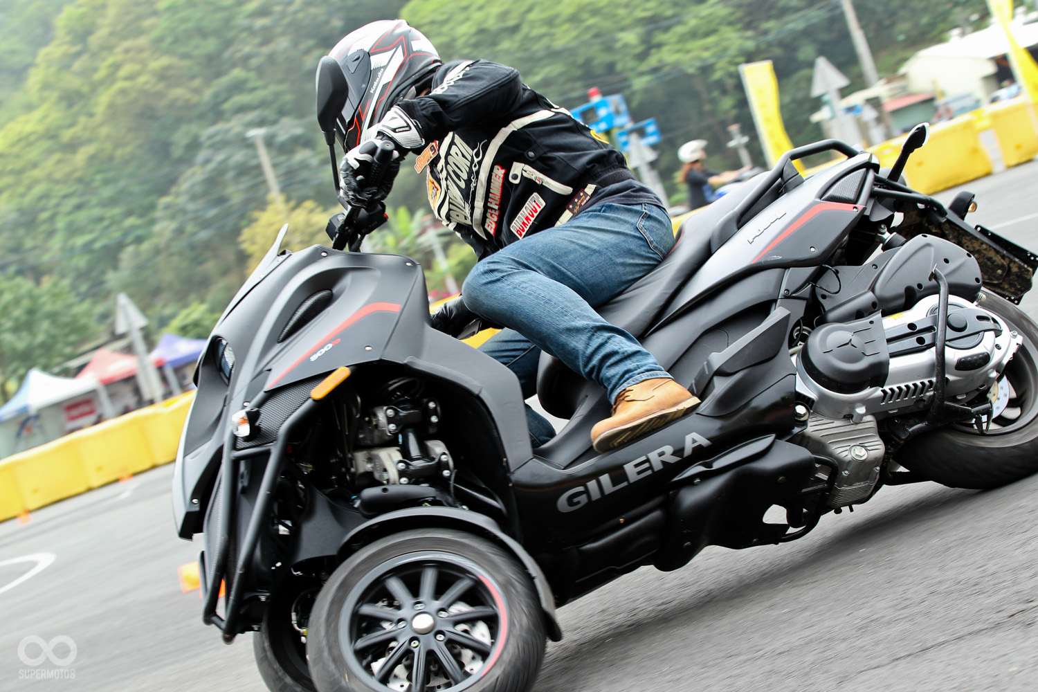 本次的發表會來到了汐止大龍港駕訓班舉辦,除了發表Gilera Fuoco 500ie外更重要的是讓媒體完整體驗這輛全新三輪車的魅力,而同時在現場也展出搭配頂級配備優惠價格的Aprilia SRMAX RF 300 並提供試乘服務。