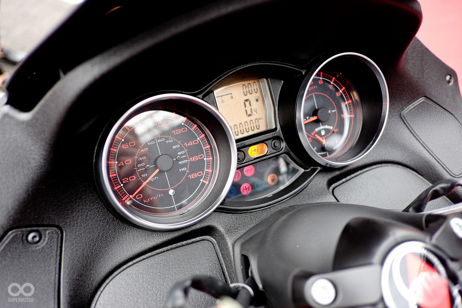 原廠搭配的規格相當保守,前面僅使用雙240碟盤搭配兩顆對向二活塞卡鉗,在我們繞行第一圈時即明顯察覺。這制動力要一輛253公斤的巨獸安穩停下似乎是有些勉強,即使我們在長直線末端踩下腳踏式連動煞車,依舊沒有獲得更好的改善。或許是因為試乘車還沒完全磨合,但在穩定的前雙輪系統下,這樣的煞車力道對於可以放膽重煞的三輪車上顯得有些可惜。