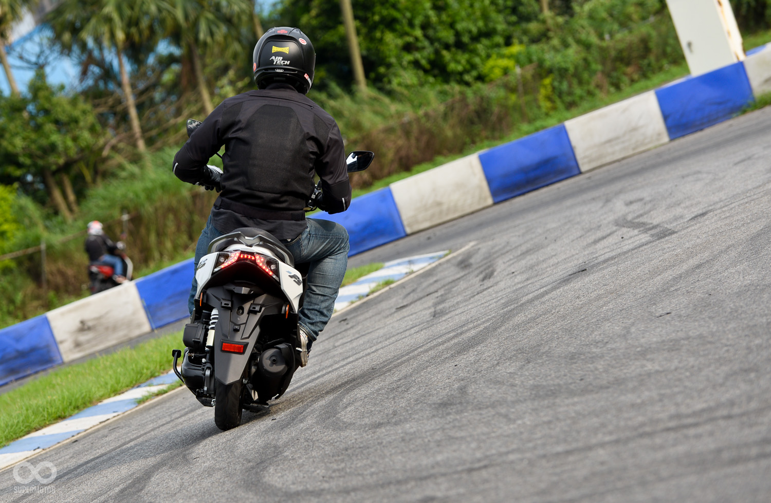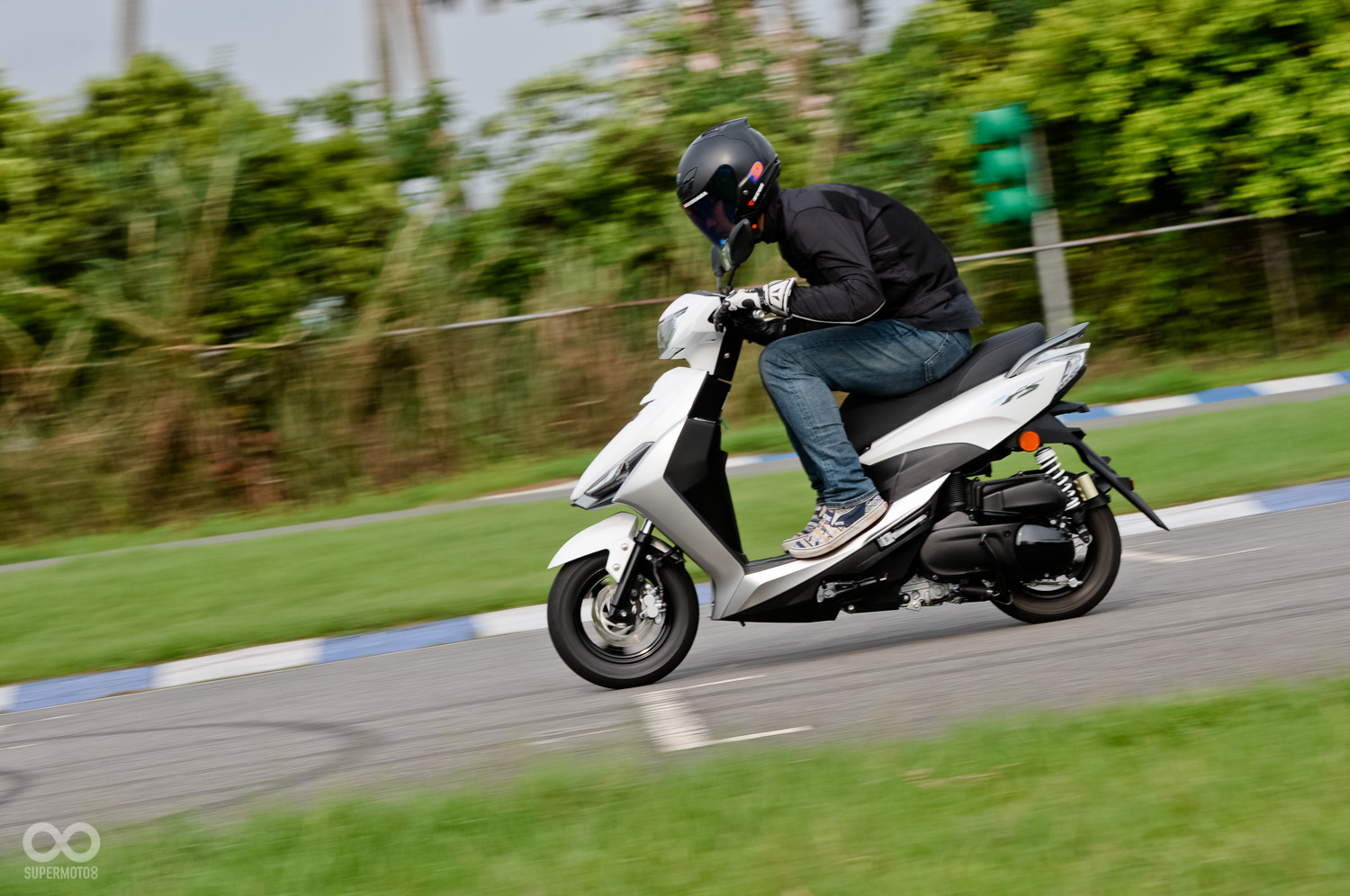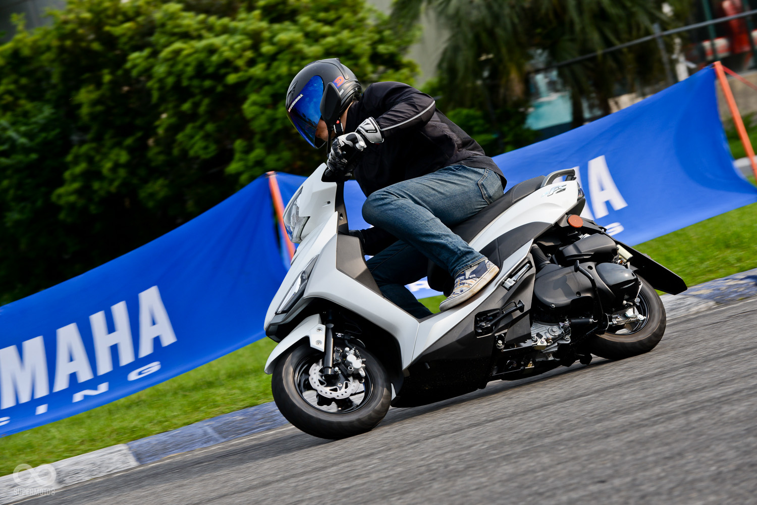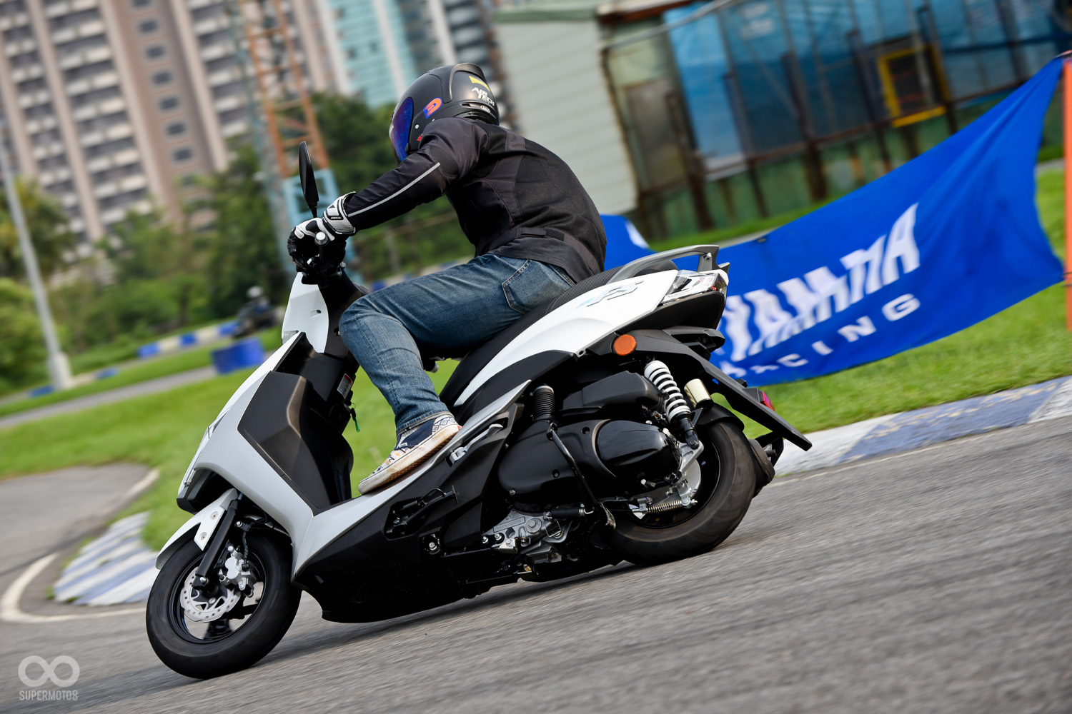 輕量化車身與較短的軸距確實為JOG FS帶來實質的效果,不論在牽車、進出賽道的小彎角,都可感受到此車輕盈與短軸距帶來的暢快感,相信這對於首次購車的年輕族群來說,會大大降低騎乘帶來的壓力。