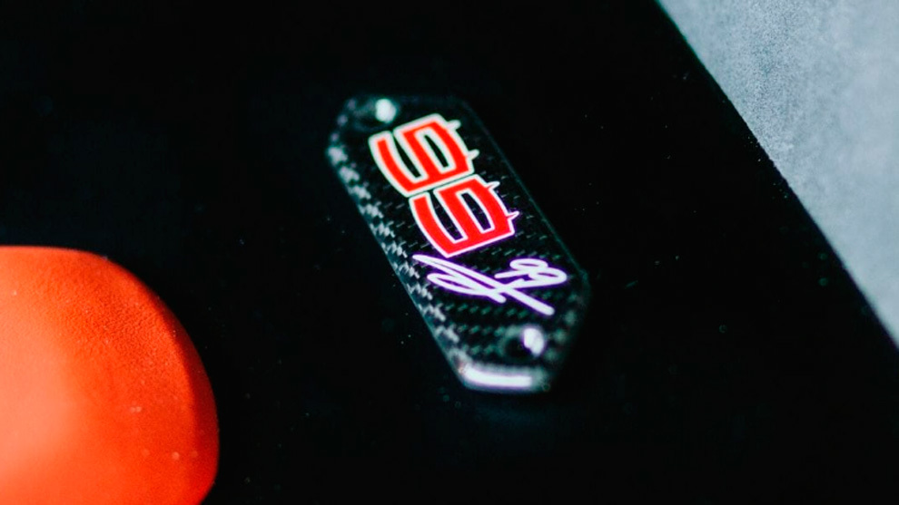 Jorge Lorenzo的這輛零號機除了編號特別之外,在外觀配色上也有許多獨特之處,車身主色使用了Grigio Acheso磨砂灰,並且將部分碳纖維外飾險露搭配亮眼的橘色系Arancio Dac來處理車身細節與拉線,配有帶有Arancio消光14幅多爪式鈦合金輪框。