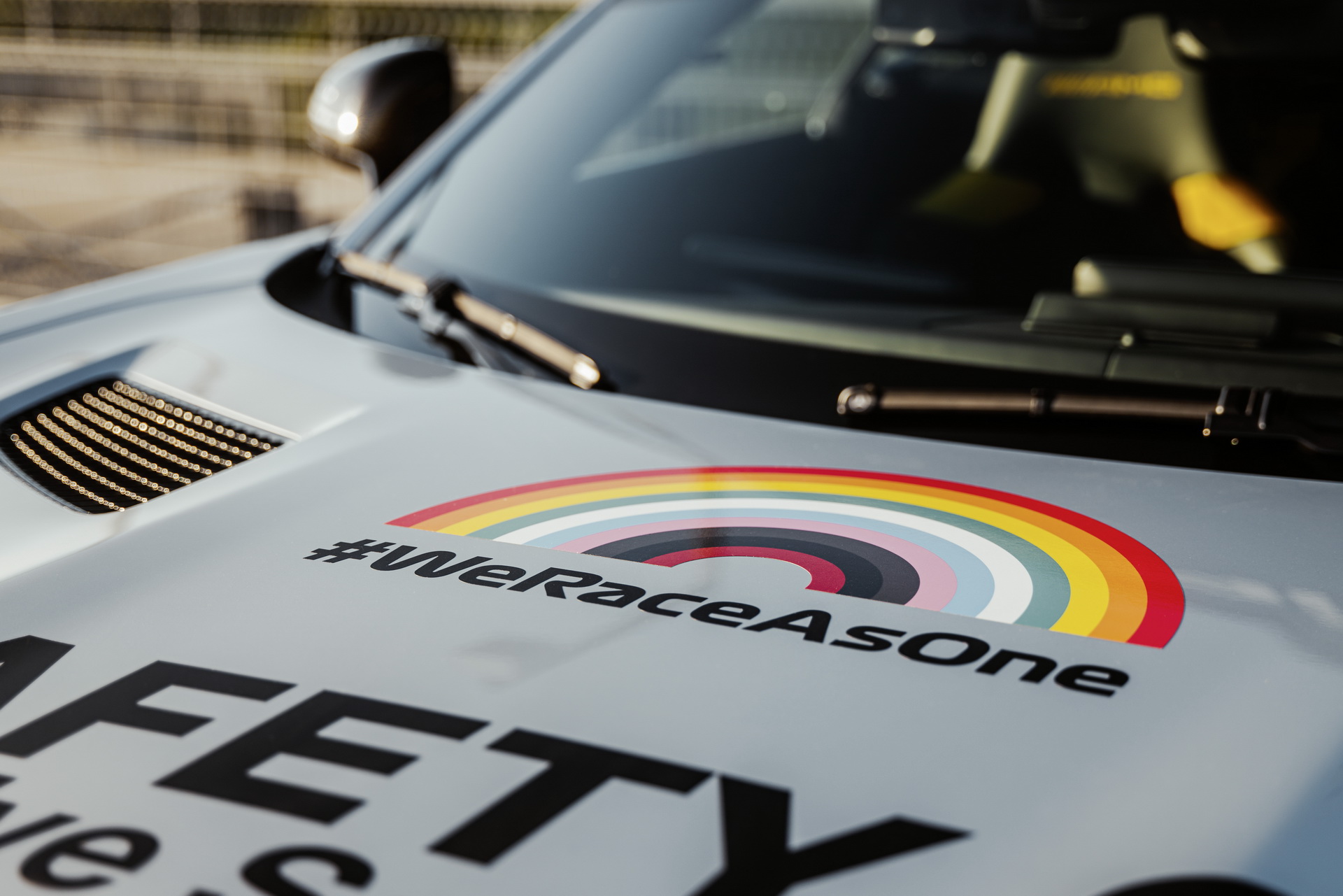 本周末將在奧地利舉行的2020年F1新賽季上可看到,特殊的彩虹視覺圖案以及"WeRaceAsOne"標籤字樣充斥在F1賽道與賽車上面,以及Drive Safely英文字母同時裝飾在安全車引擎蓋上,藉此提醒看轉播的車迷,能以謹慎與體貼周圍路人的方式開車,帶來一種特殊的宣傳效果。