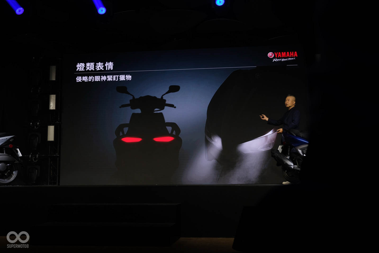除了換上全新的水冷引擎之外,這次Cygnus Gryphus在外觀上也有相當大的改動,首先是車頭部分,新車款一改前幾代底部一體式頭燈設計,改為對稱式的雙燈設計,而且在雙燈的兩側還能看到向下包覆的方向燈,看起來就像兩支前掠的獠牙,非常霸氣,但較為可惜的是方向燈仍使用傳統燈泡。
