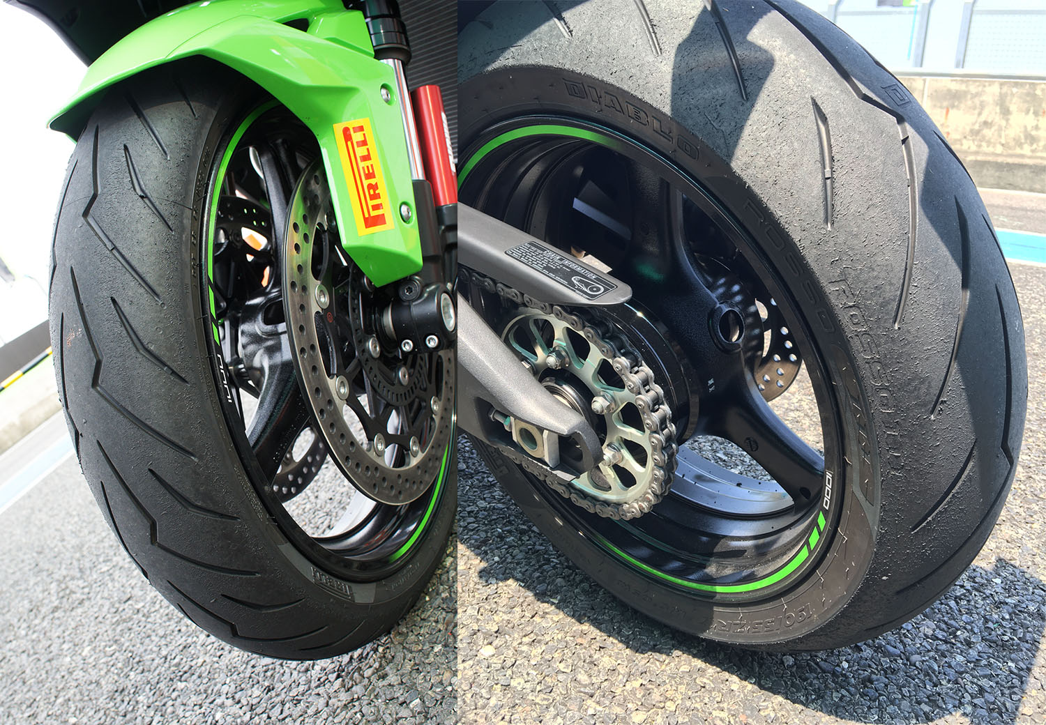 試駕Ninja ZX-10R時,我們腦中想的是這種完全性能導向的車,應該要用DIABLO SUPERCORSA(大閃電)才能匹配吧,街跑設定的ROSSO III夠嗎?但幾圈下來疑慮一掃而空。我們曾因為過度興奮在彎中發生跑開與斷油重補的失誤情況,除了Ninja ZX-10R擁有的高科技電控輔助外,ROSSO III寬廣的包容性也完全展露無疑,即使在時速200公里下大手煞車,或者是大補油門,ROSSO III完全承受得起Ninja ZX-10R的強大運動力。
