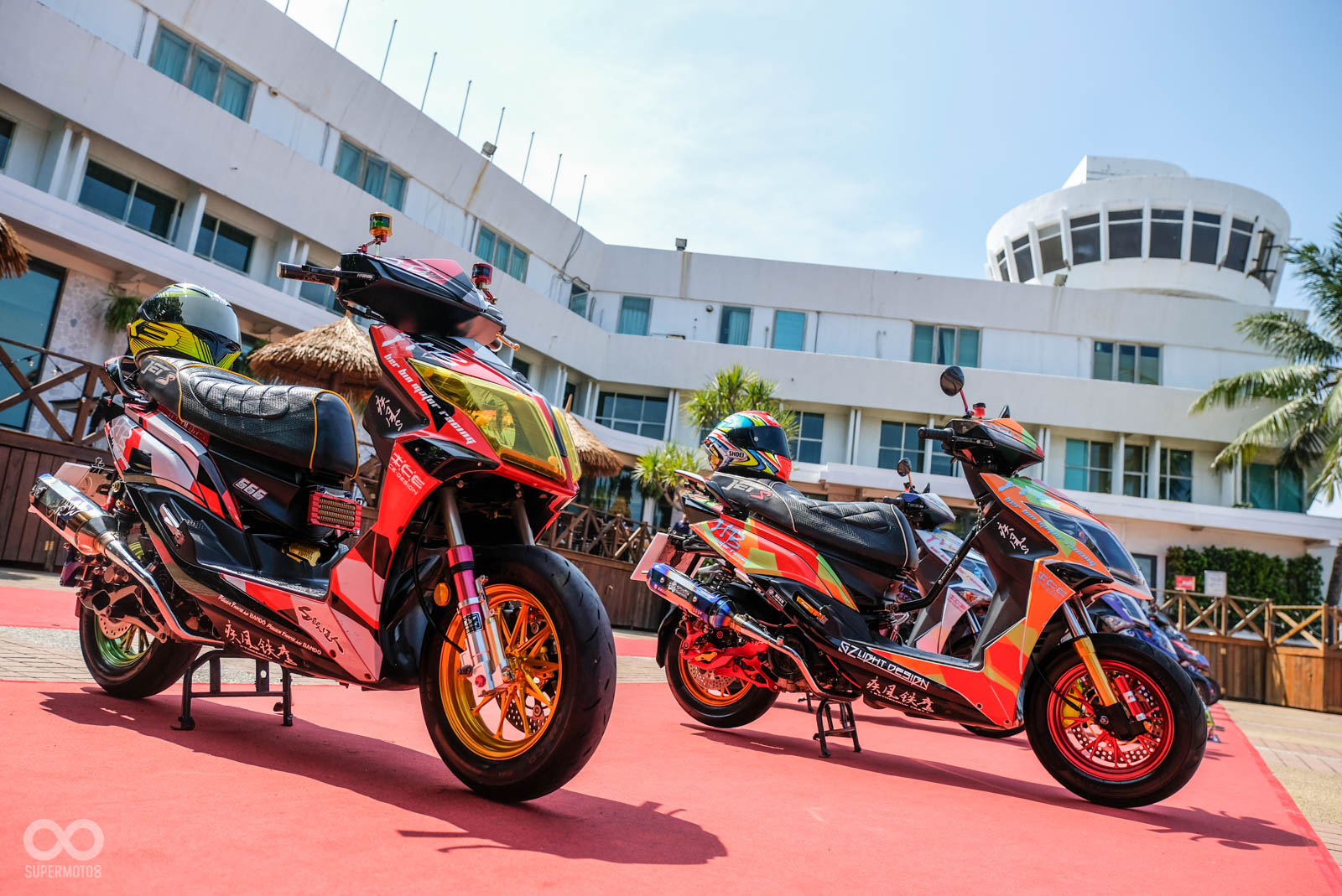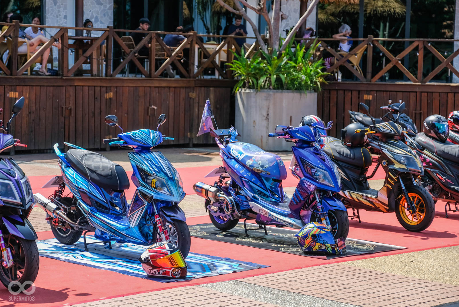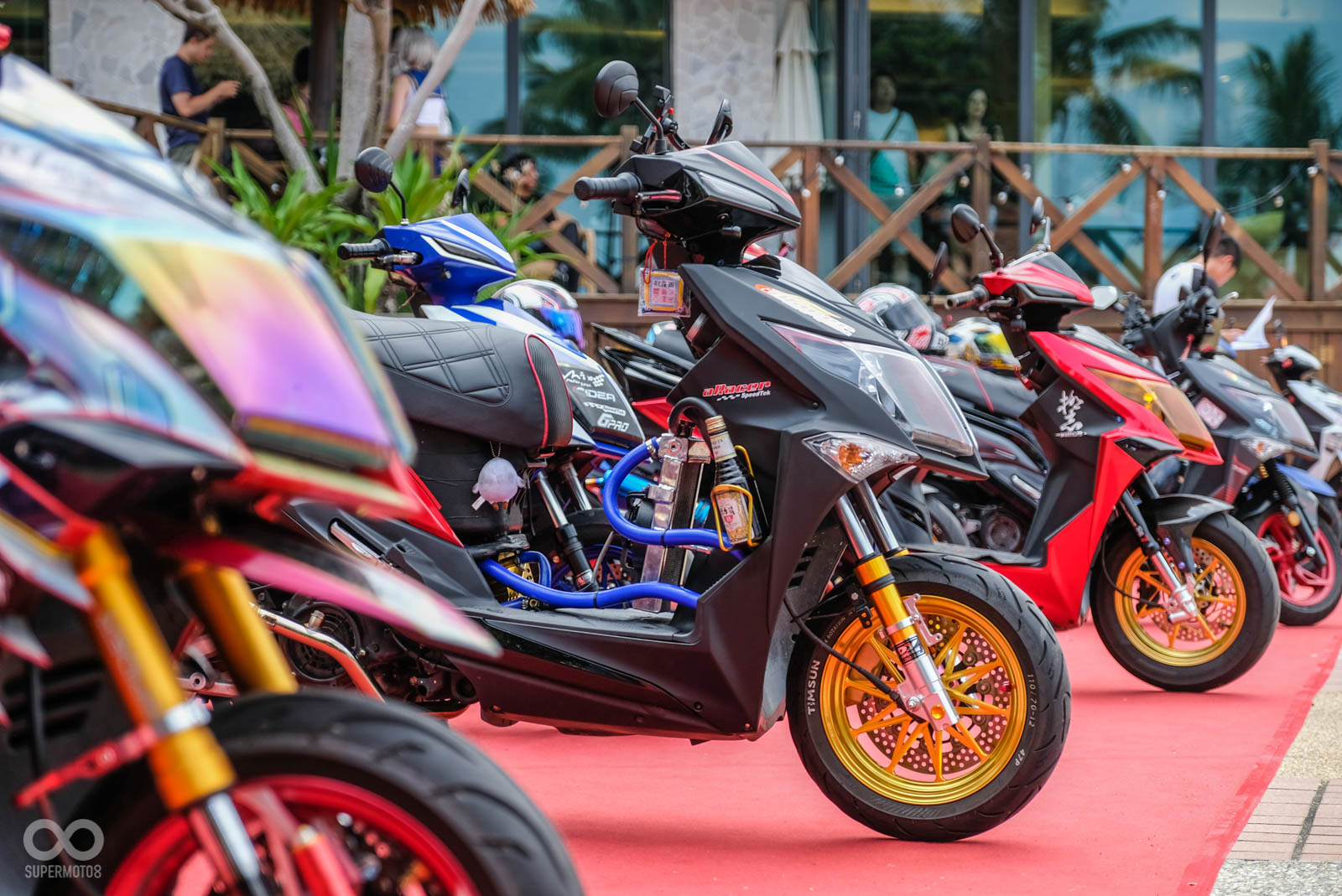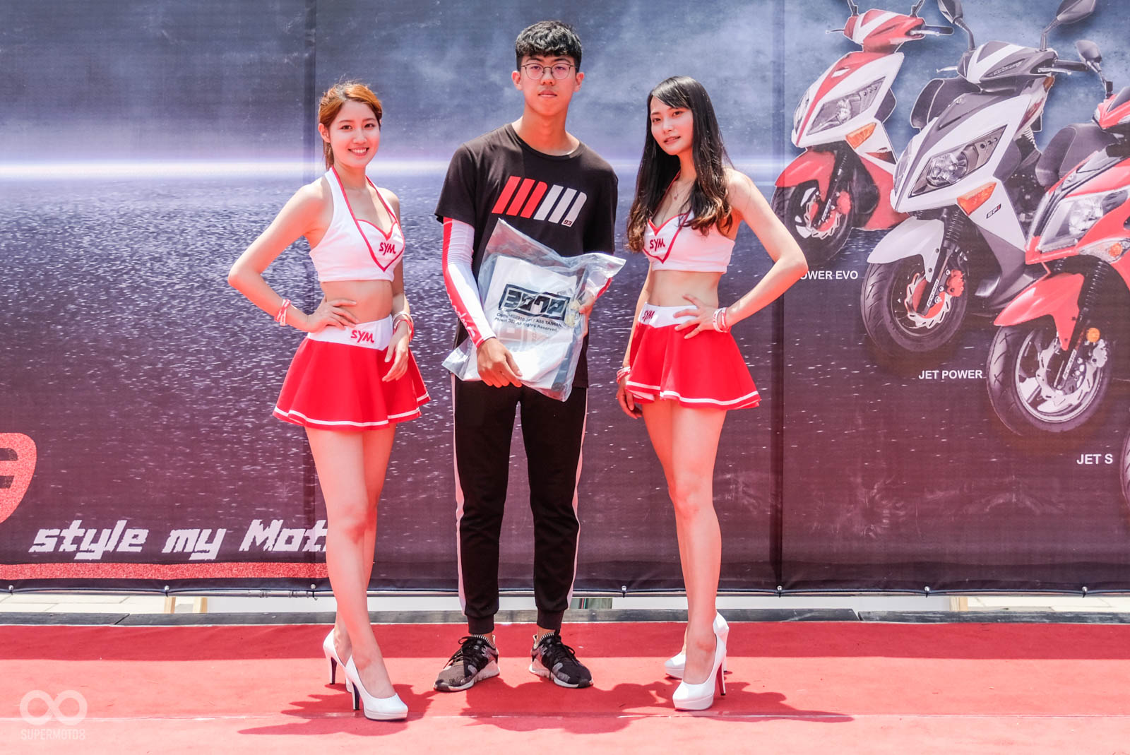 本次活動舉行於高雄西子灣沙灘旁,在活動會場就可以遠眺沙灘的地點相當舒適,車友一早報到後立刻會被引導至最近當紅的“模型盒”內拍照,主辦單位除了在模型盒幫每位車友紀錄最帥氣的人車照,拍完照後也引導車友停至指定停車位,一字排開的改裝SYM JET相當霸氣與整齊。
