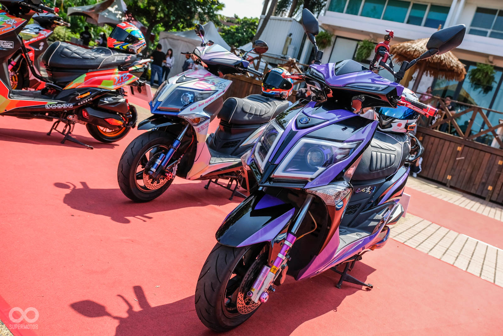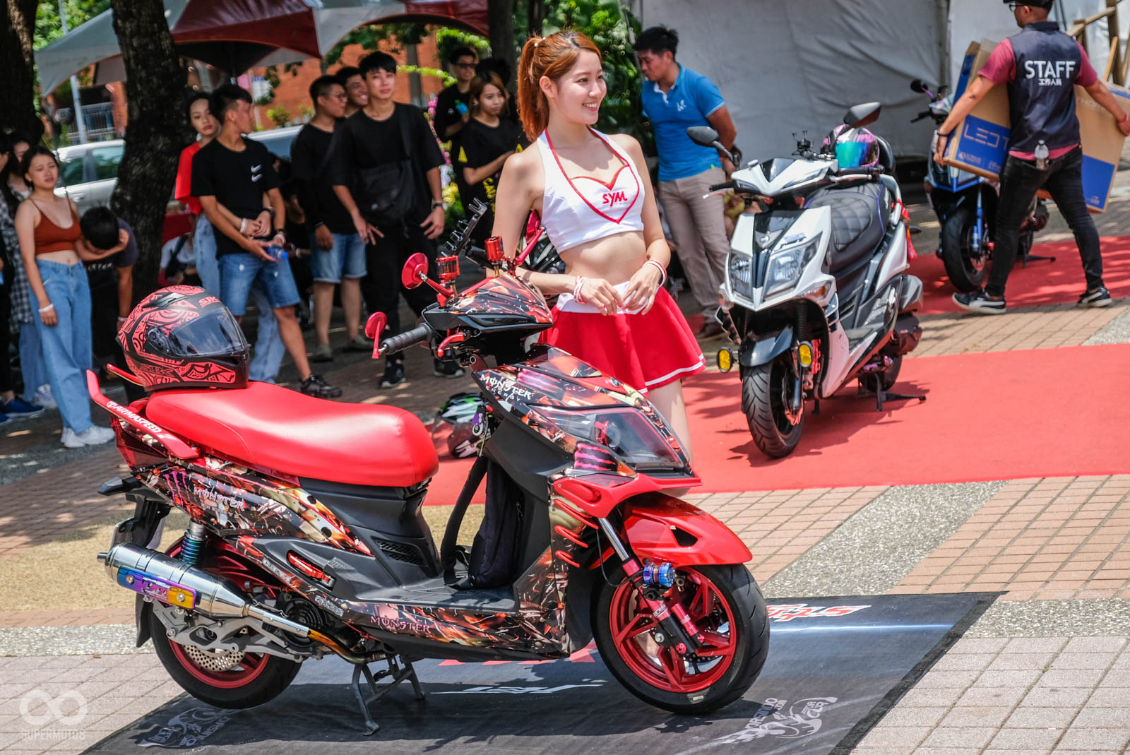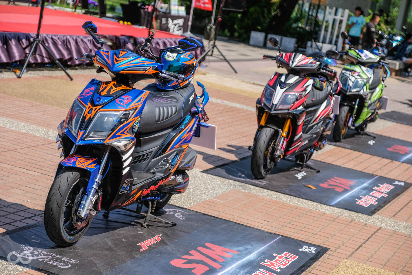 這類型的車友聚會,特別是SYM以改裝為主軸舉行的車主活動,來到現場除了是車主得意地伸展台外,也吸引許多車迷前來朝聖,對於剛入手新車的朋友來說,現場可以看到眾多不同風格的改裝車,不論你要提升動力操控,或者是走往視覺系改裝,現場除了實車看個夠外,更可以直接與車主交換意見討論。