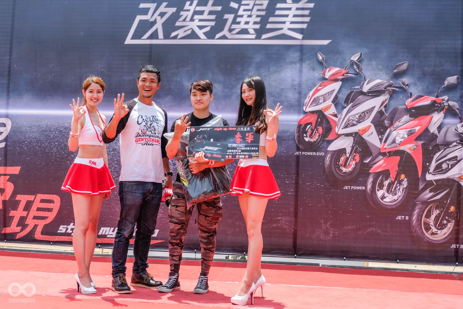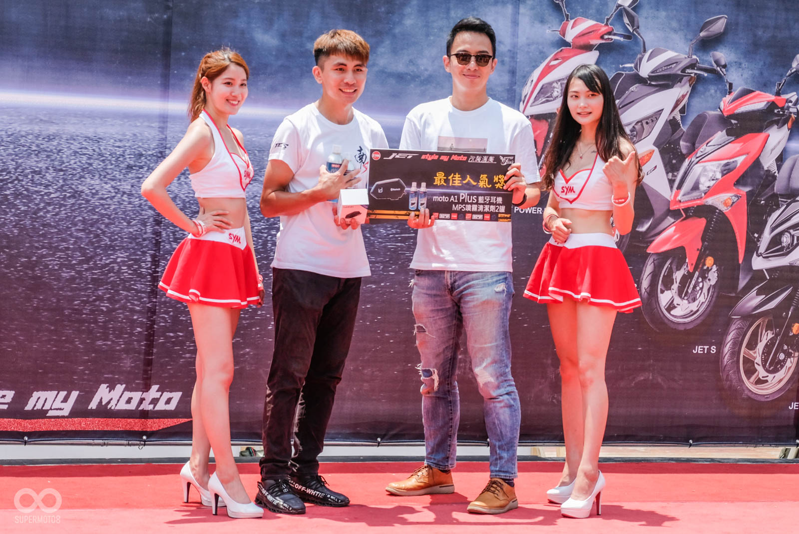 既然本次活動為“改裝車選美”,那絕不能錯過大家期待的改裝車評選,這次除了現場民眾可以領取貼紙為車輛評分外,主辦單位也找來多位機車專業媒體一同出席,分別為小老婆汽機車資訊網的Singer、SUPERMOTO8的BEN、MOYOBUY的大柱、BIKE-IN的小三,多位評審皆會透過自己的專業眼光與經驗,來為車輛評分。