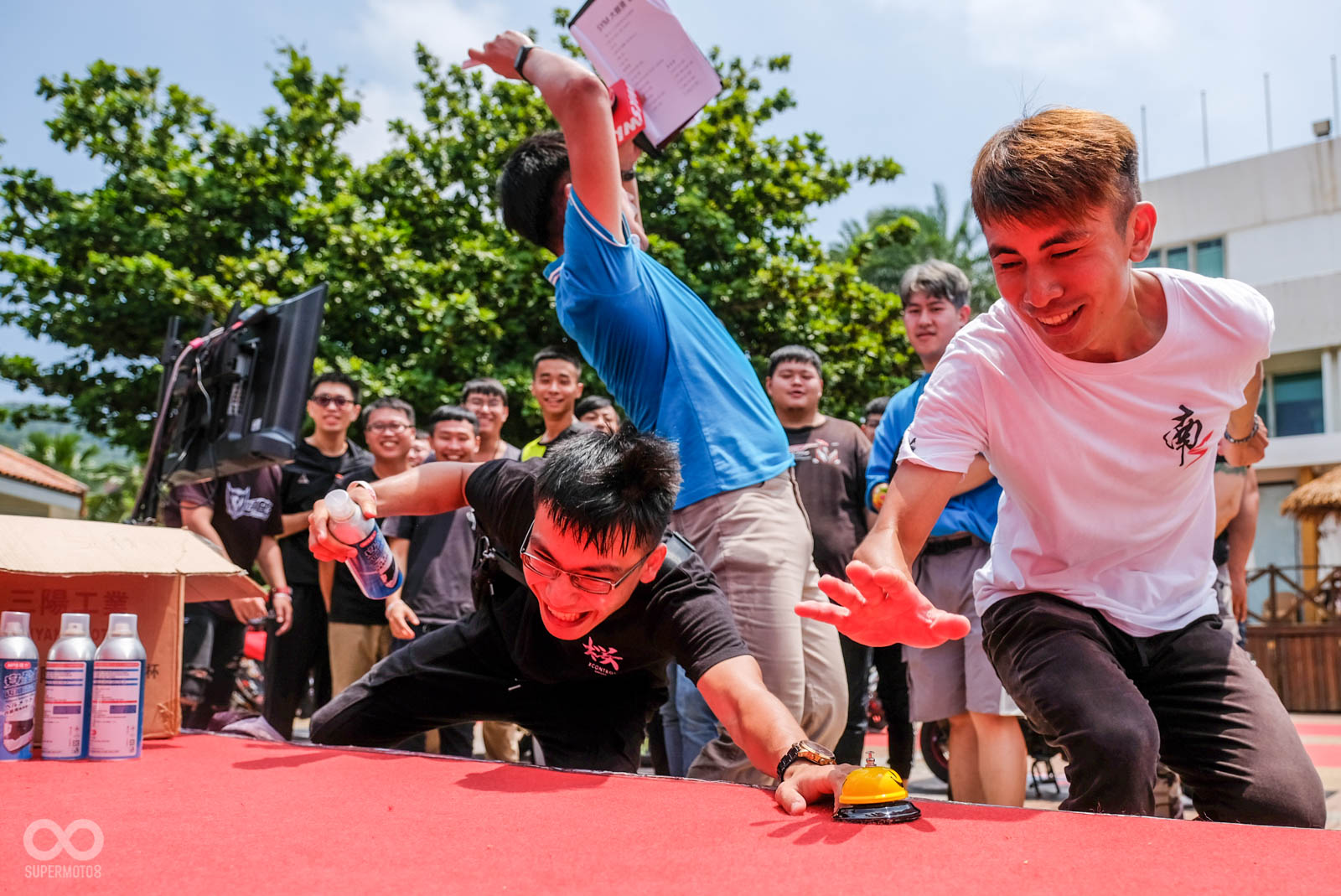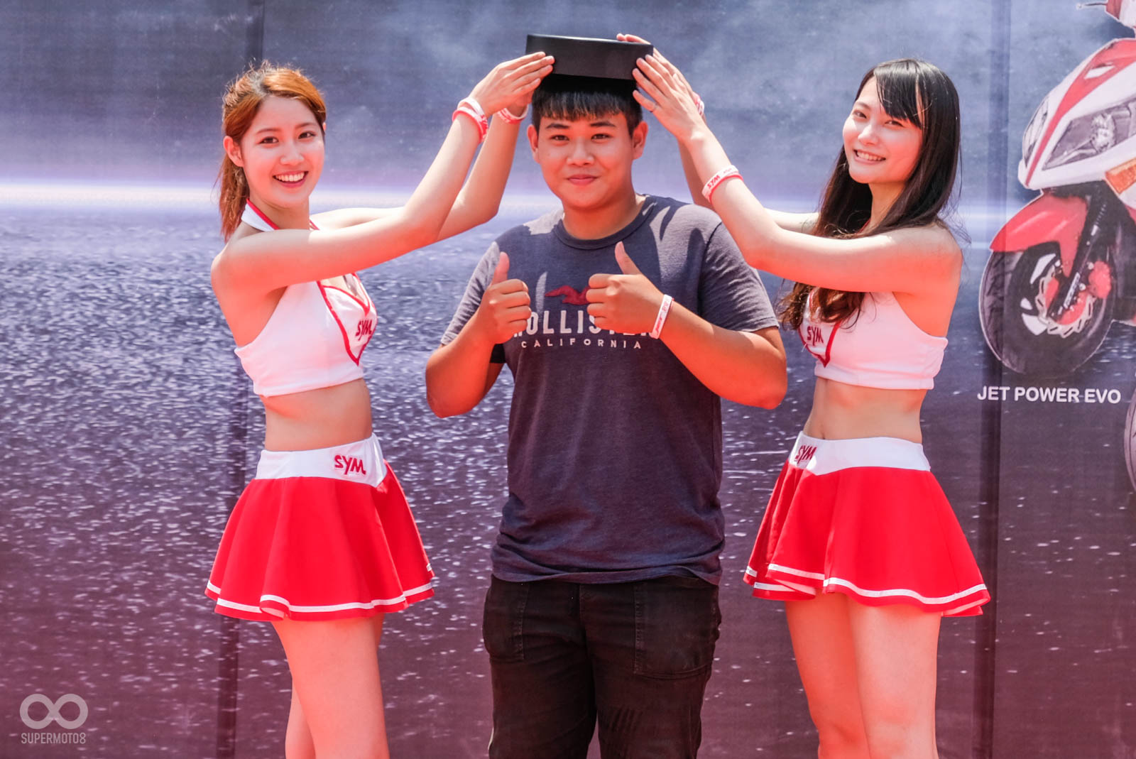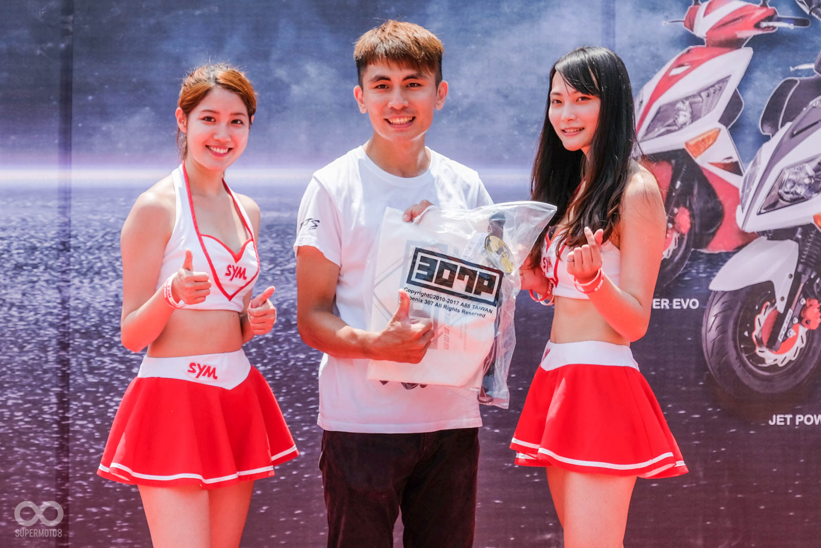 除了上述優點外,豐富的贈品更吸引大量的SYM車主前來共襄盛舉,即便颱風來臨前的高雄籠罩在炎熱高溫下,大量車主依舊相當不畏豔陽,來到舞台前進行小遊戲,SYM設計的小遊戲也相當特別,從「看車輛局部圖猜SYM車型」、「九宮格方塊拼圖」、「比反應快速地抓取遊戲」,以上關卡都與車輛有關,甚至最後的抓取遊戲,看板上還有許多有趣的改裝名詞,車台強化、強化曲軸等改裝零件用以計分使用。