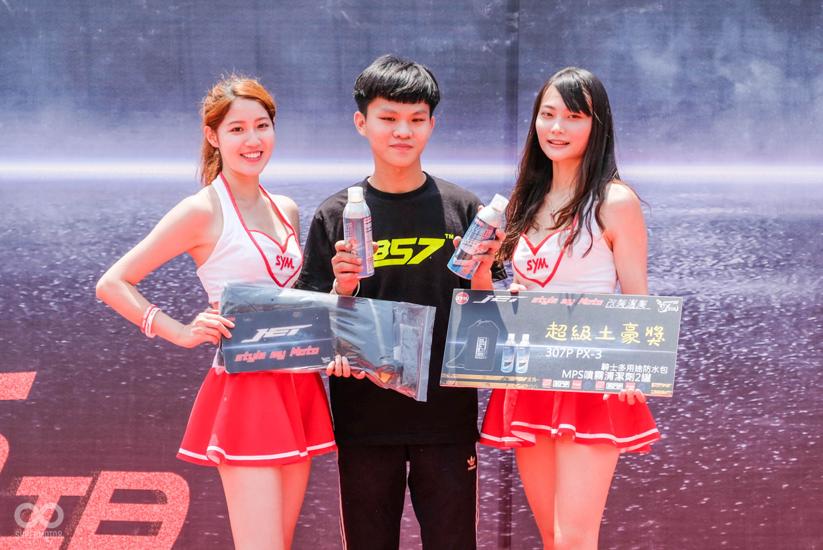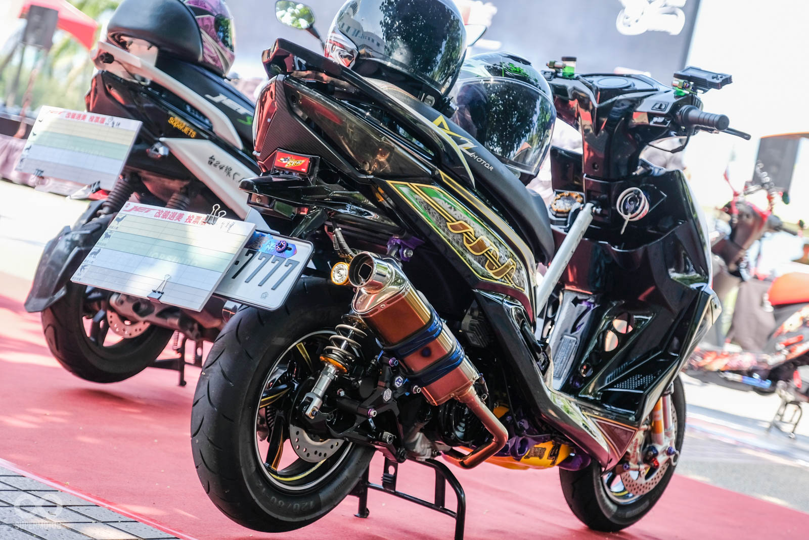 最後獎項分別有“最佳視覺”、“超級土豪”、“最佳品味”三種票選獎項,獎項有安全帽清潔劑、防水背包、藍牙耳機等,而整體評選的前三名改裝車除了上述相關禮物外,更有價值破萬的進口安全帽、高性能火星塞,讓車友可以騎的帥氣又安全。