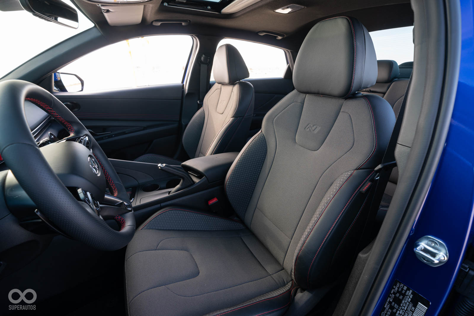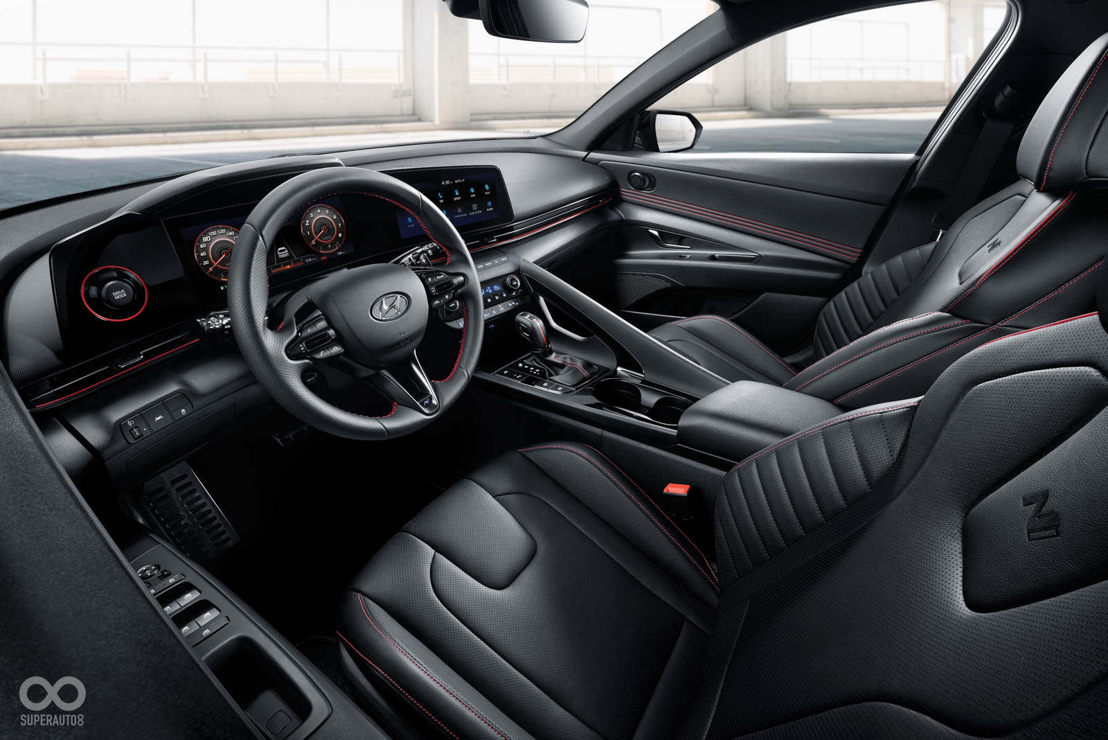 內裝導入大量的紅色車縫線,與專屬N line版座椅,方向盤、排檔頭、腳踏板等細節材質也都有所提升,呼應外觀、引擎更強的動力與性能表現。時下注重的安全系統配有:FCA前方碰撞輔助、LKA車道偏移輔助、LFA車道維持輔助、HBA近遠光燈輔助、DAW疲勞駕駛警告、BCA盲點系統、SCC主動車距維持等,市場上的主流規格,Elantra N Line上都有。