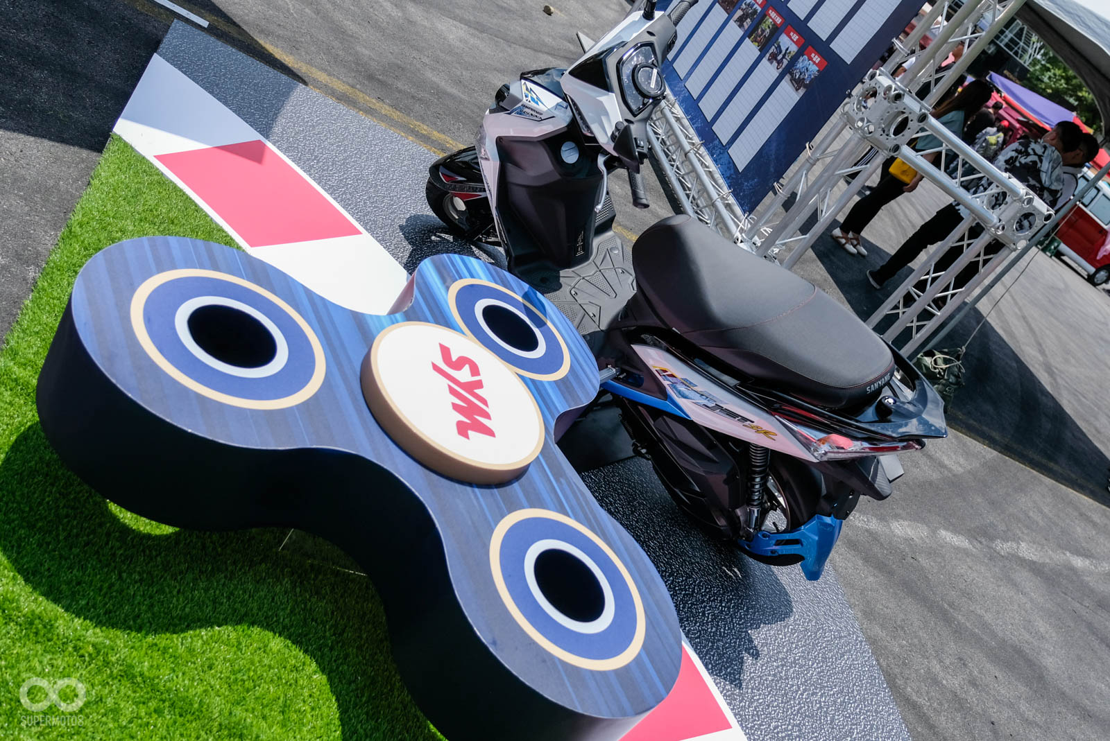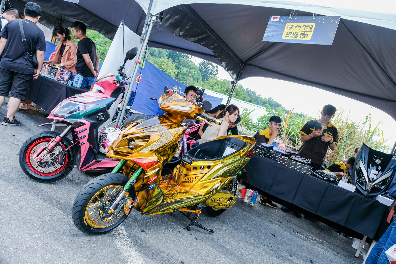 現場的攤位也相當豐富,從外觀部件、車殼等改裝品,到提昇性能相關的改裝零件與知名車行展示,目前推出12吋速克達運動胎的倍耐力也到場服務車友,並且現場也擺放了黑黃塗裝,且安裝小惡魔的JET S改裝車展示。