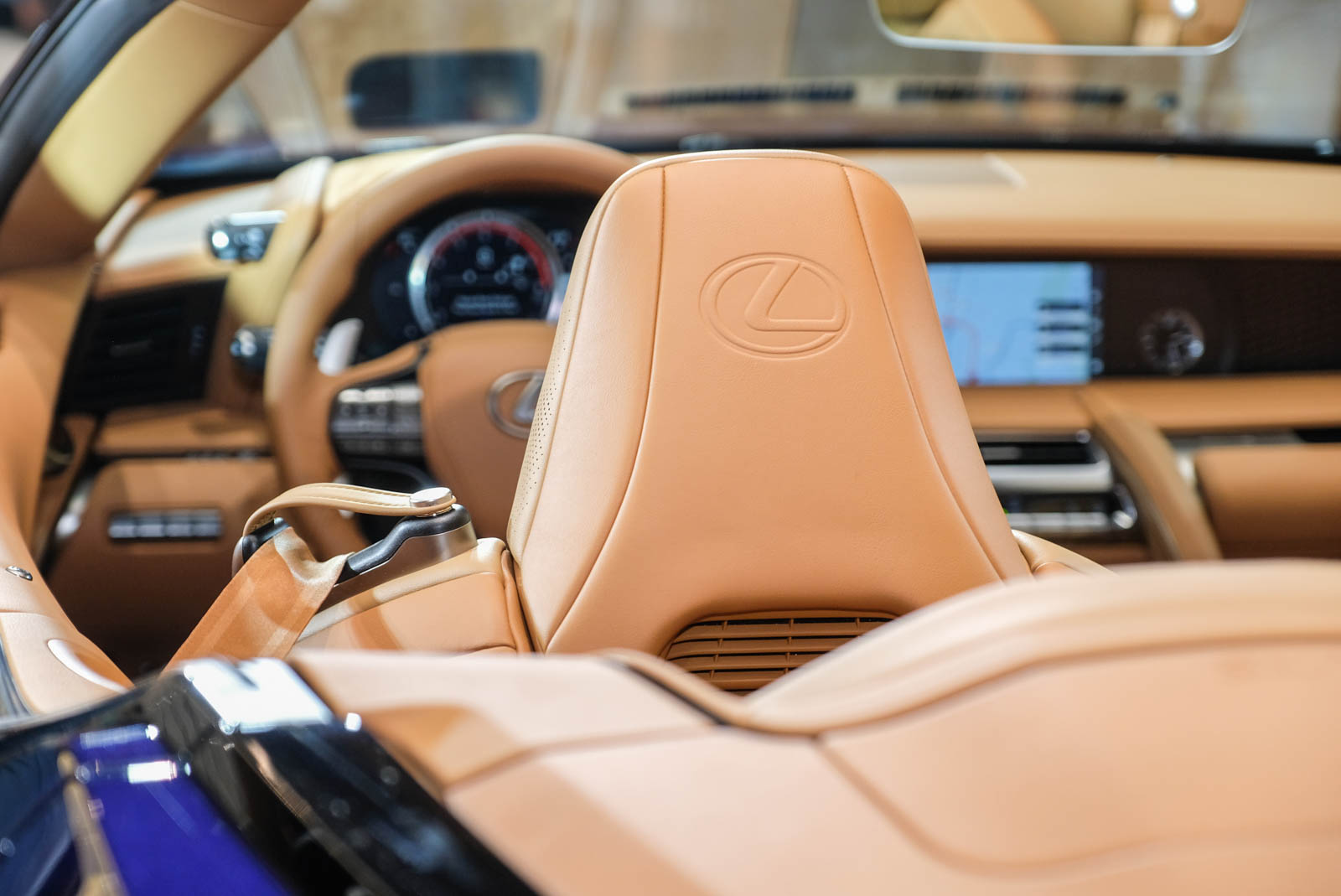 內裝同樣維持LC車款給人的頂級、豪華印象,但LC 500 Convertible的頭枕上也同樣有Lexus的Logo浮雕字體,這塊軟蓬的開關時間分別為15、16秒,並可在車速50km/h內作動。搭配的Open-air Control 智慧型空調管家,可以制動調整開關蓬時的冷氣溫度。