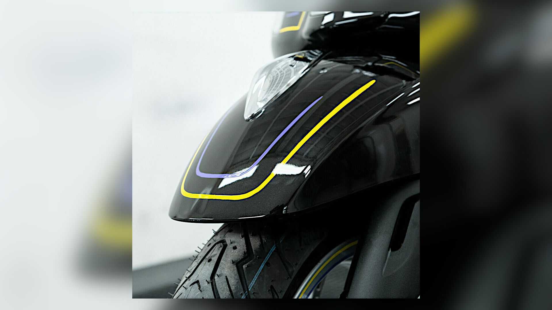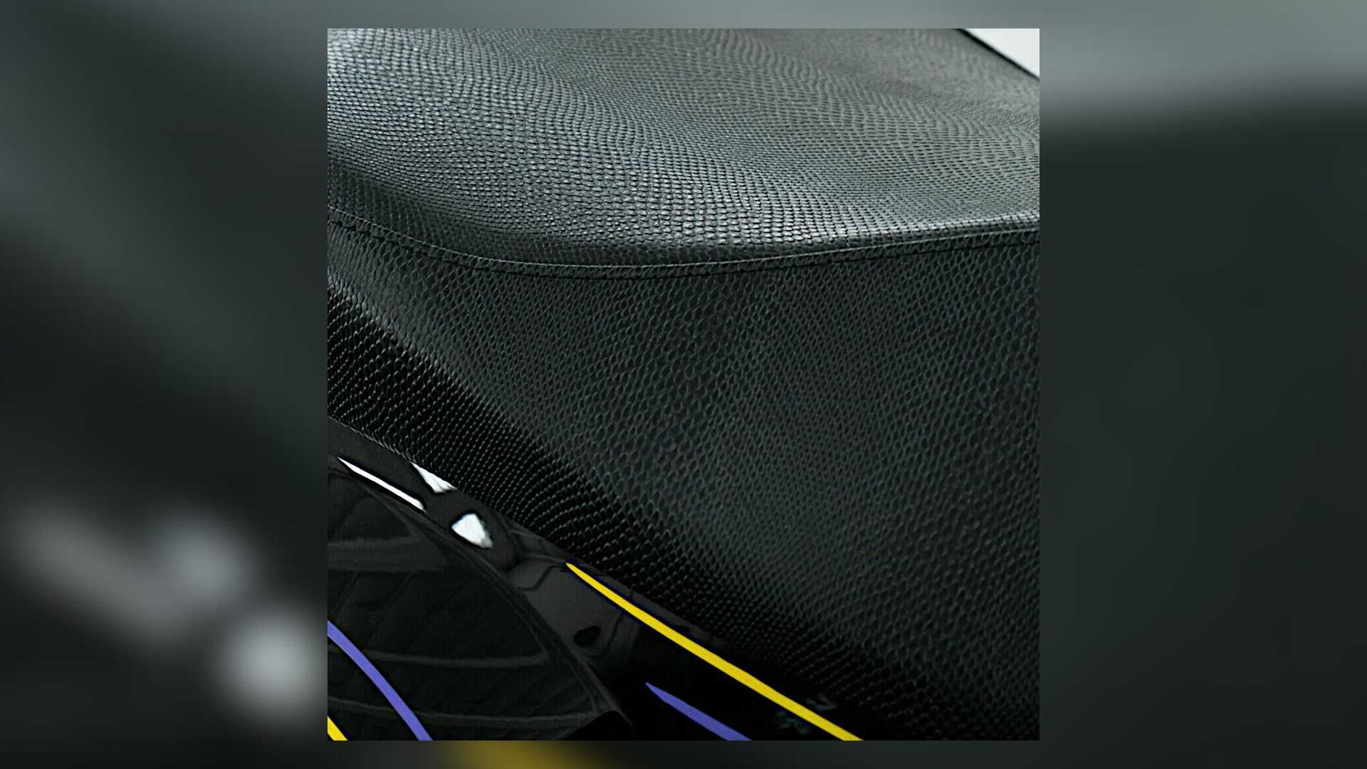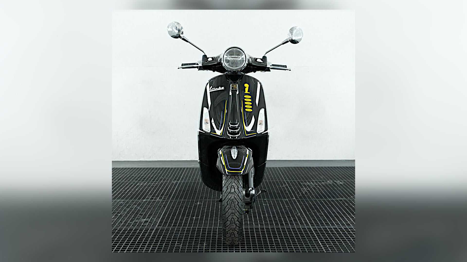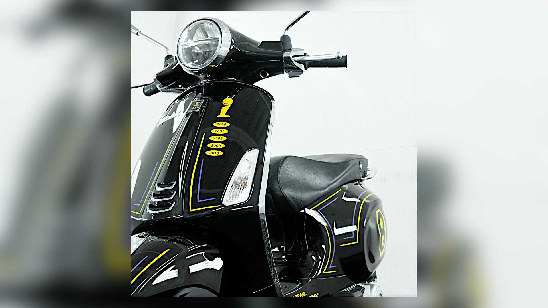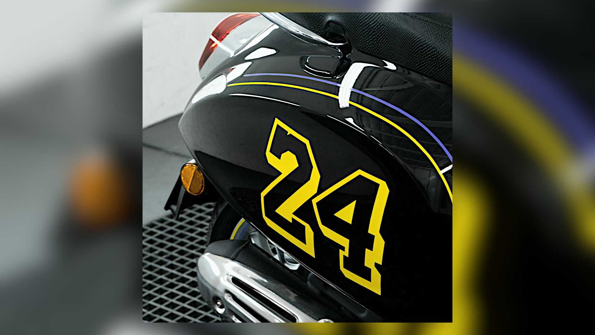 這輛Vespa Primavera 50身上的塗裝皆是手繪製作,以黑色烤漆為基底,運用了象徵著湖人球衣的紫色以及金色來塗裝,左右兩側可以看到大大的8以及24,就是Kobe曾經的球衣背號,座椅仿製了蛇皮的觸感,因為Kobe還有個綽號就叫做「黑曼巴」,車上還有著諸多細節,像是奪冠的年份以及他說過的一些經典名言,讓這輛車格外獨具意義。